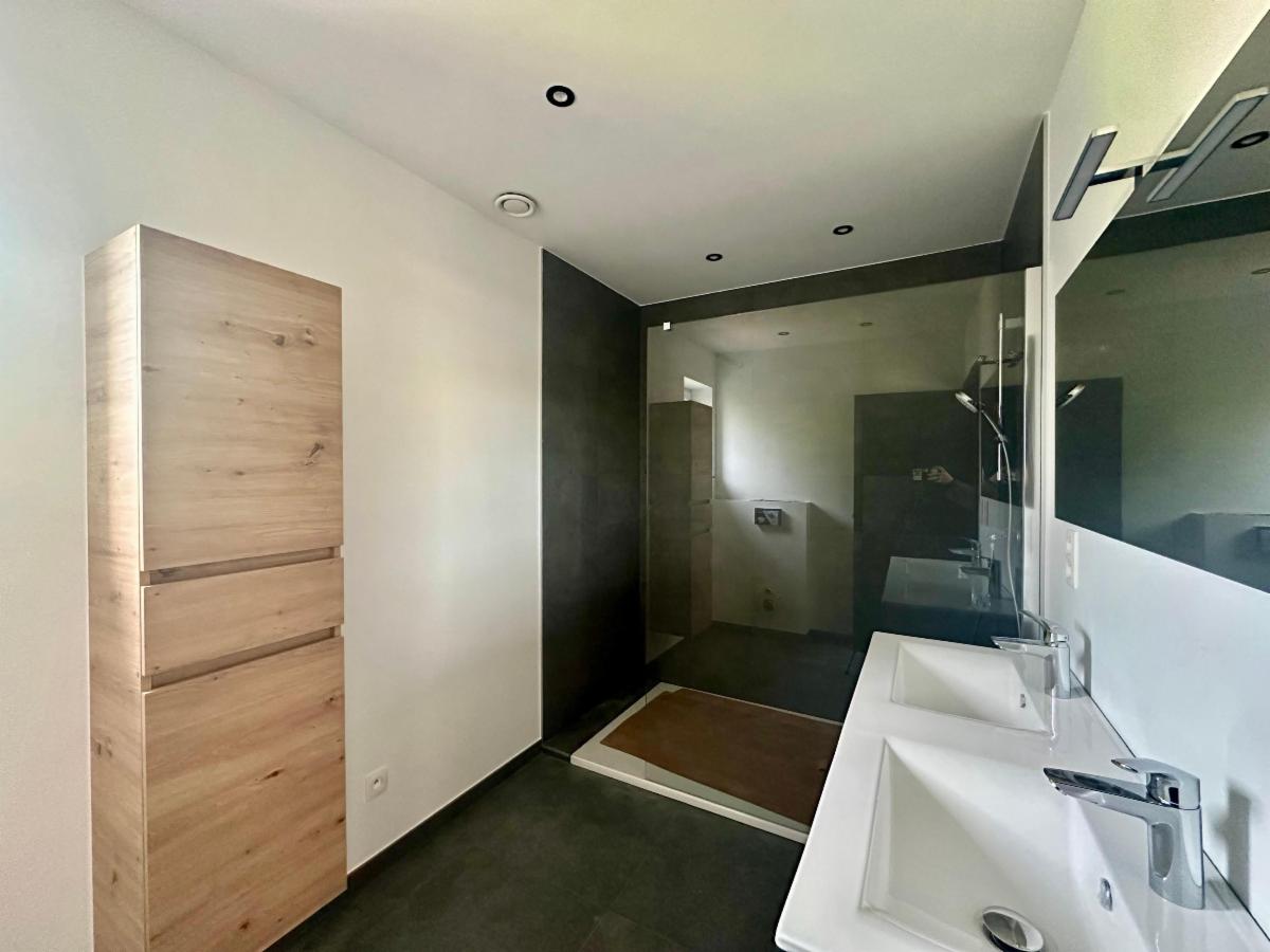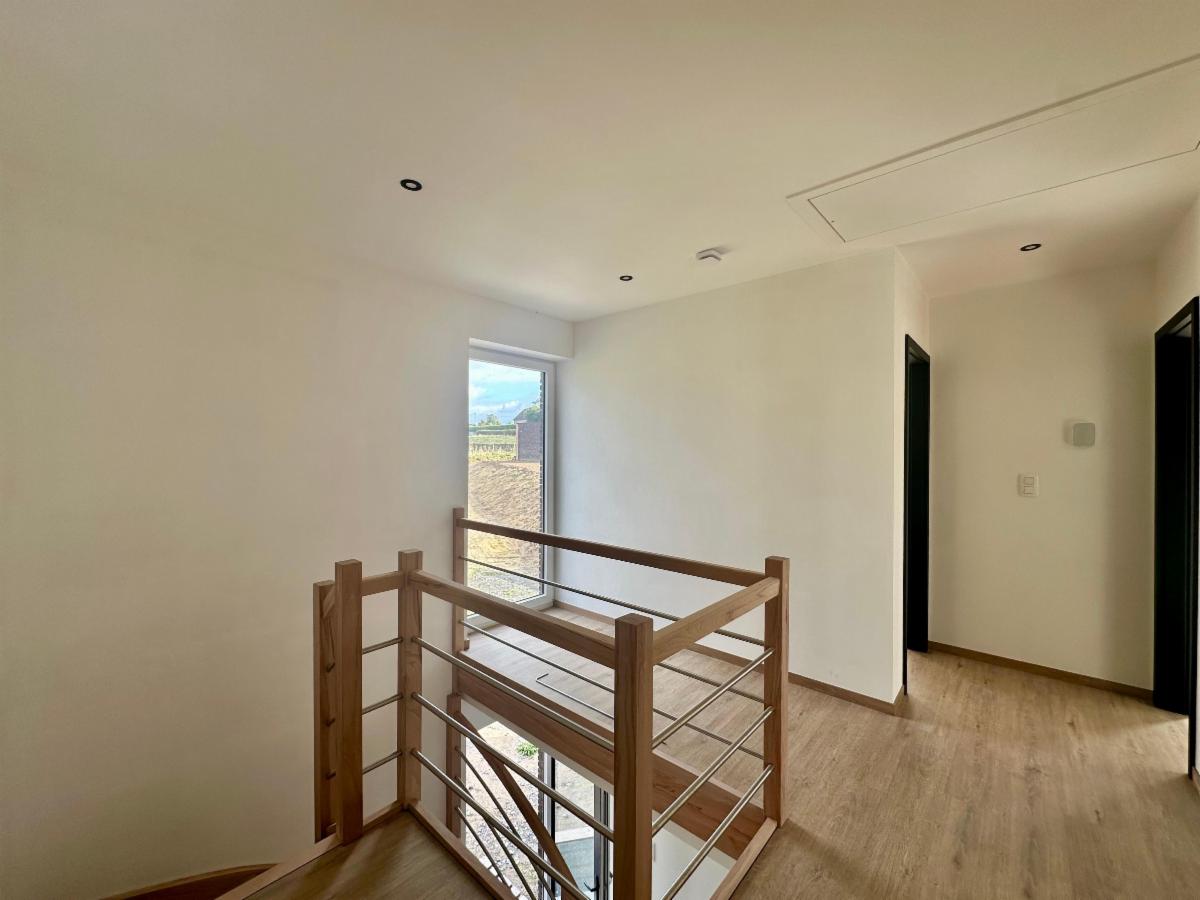 Techniques : PEB A, chauffage sol, pompe à chaleur Buderus, ventilation double flux, isolation haute performance, système d’alarme, châssis DV à haut rendement, citerne d’eau de pluie 10.000L et microstation d’épuration individuelle, peintures réalisées partout, sol carrelé ou paquet, RC à déterminer.