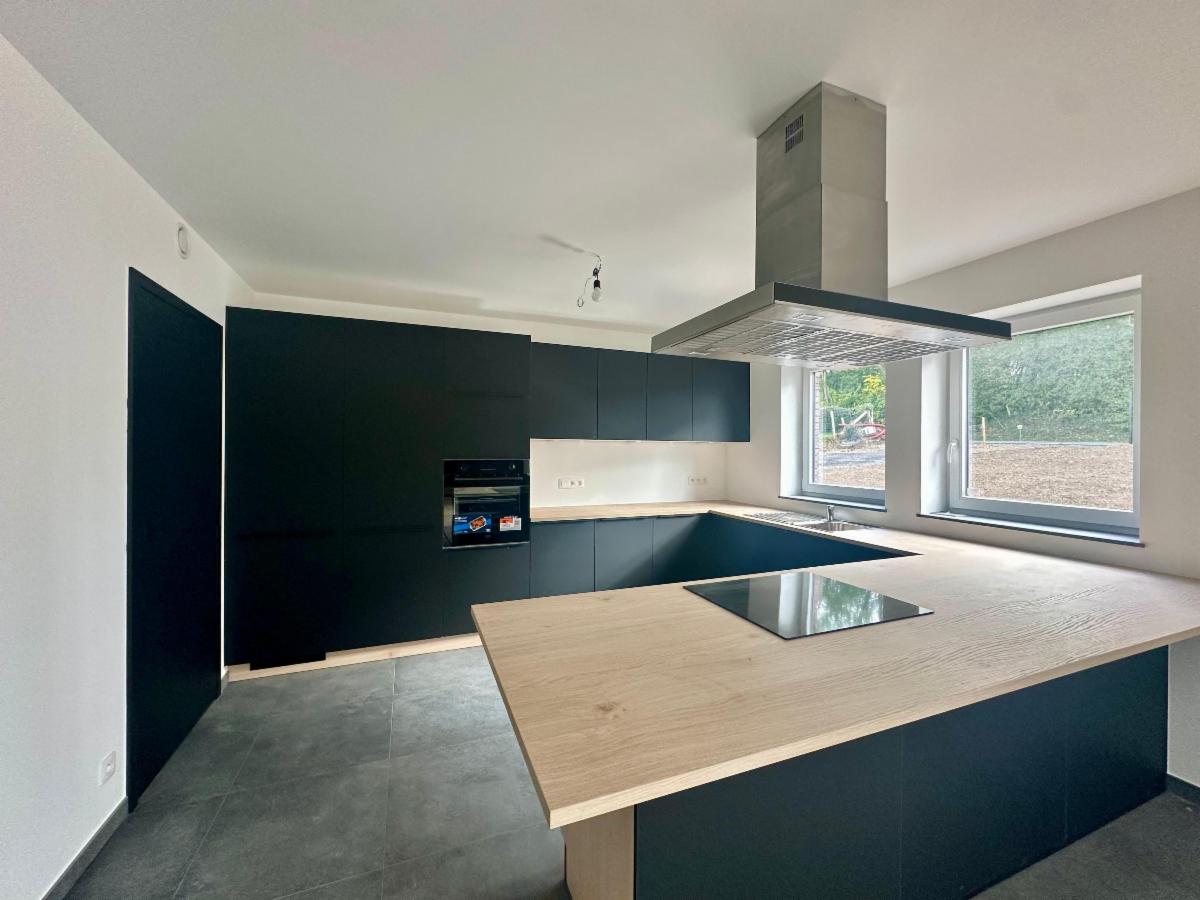 Techniques : PEB A (projeté), chauffage sol, pompe à chaleur Buderus, ventilation double flux, isolation haute performance, système d’alarme, châssis DV à haut rendement, citerne d’eau de pluie 10.000L et microstation d’épuration individuelle, peintures réalisées partout, sol carrelé ou paquet, RC à déterminer.