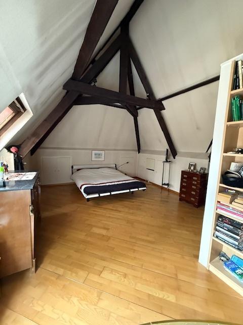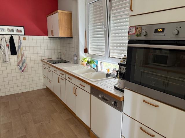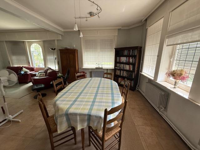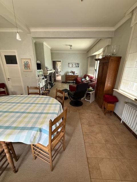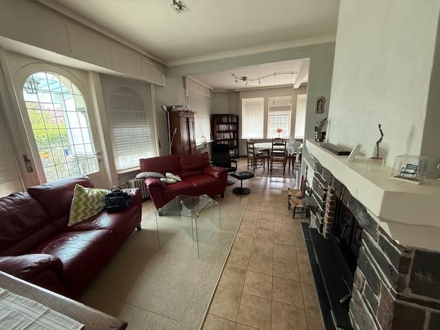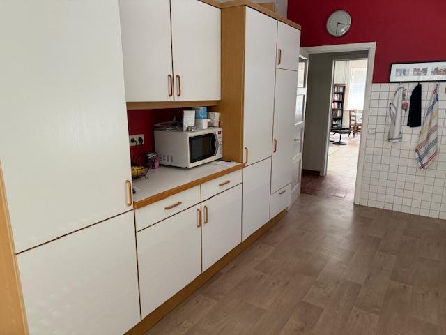 -au rez-de-chaussée: Hall, living (avec feu cassette), grande cuisine équipée (taques électriques, lave-vaisselle, four) avec feu à bois, véranda, une chambre ou bureau, salle-de-bain (douche, baignoire, lavabo), wc