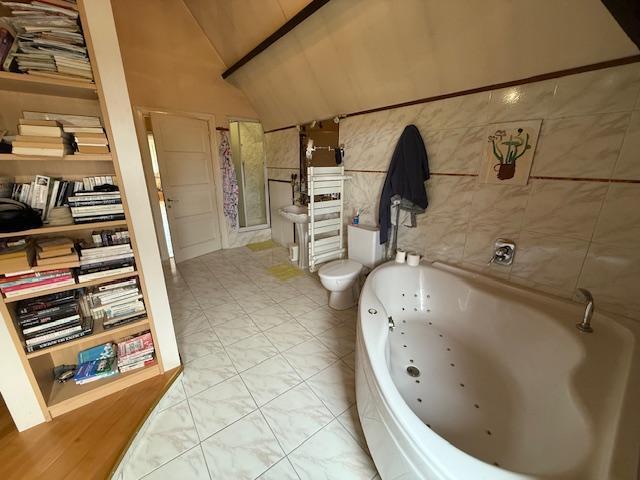 -au 1er étage: une chambre, une suite parentale avec douche, lavabo, wc, baignoire balnéo, coffre