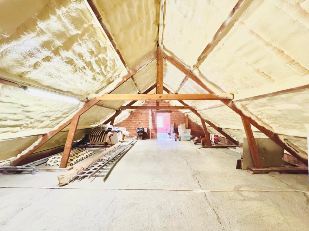 De zolder is volledig geïsoleerd met pur van ca. 16 cm dik en is bereikbaar via de trap in de garage.