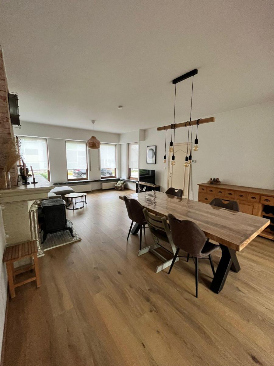 Op het gelijkvloers is een inkomhal met traphal aanwezig, een ruime woonkamer met natuurlijk licht. Aansluitend bevindt zich een gezellige ruimte met zicht op de tuin, die in verbinding staat met de keuken. Verder is er een berging en een badkamer met bad, douche, dubbele wastafel en toilet.