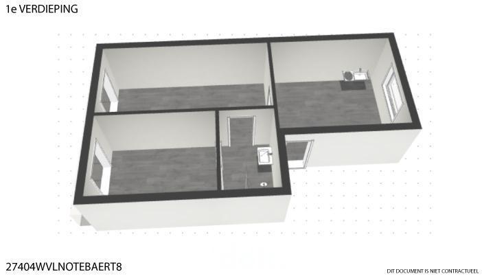 Het appartement 3 op V1, omvattende; woonkamer, keuken, toilet, kamer met balkon.