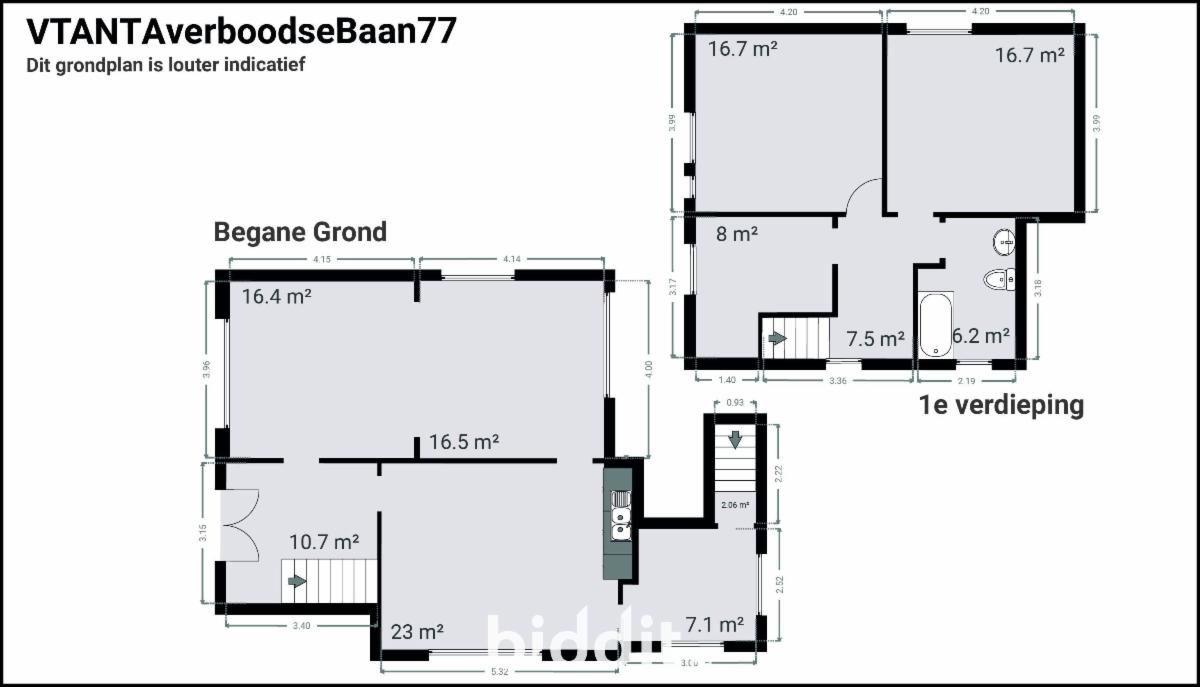 - gelijkvloers:-inkomhal met trap naar de eerste verdieping, toegang tot de kelder en de garage, keuken, woonkamer en een veranda met apart toilet;