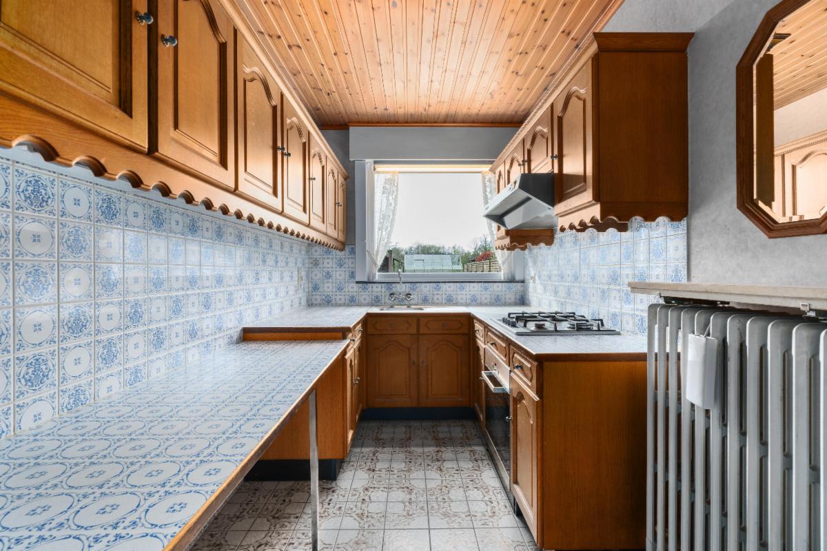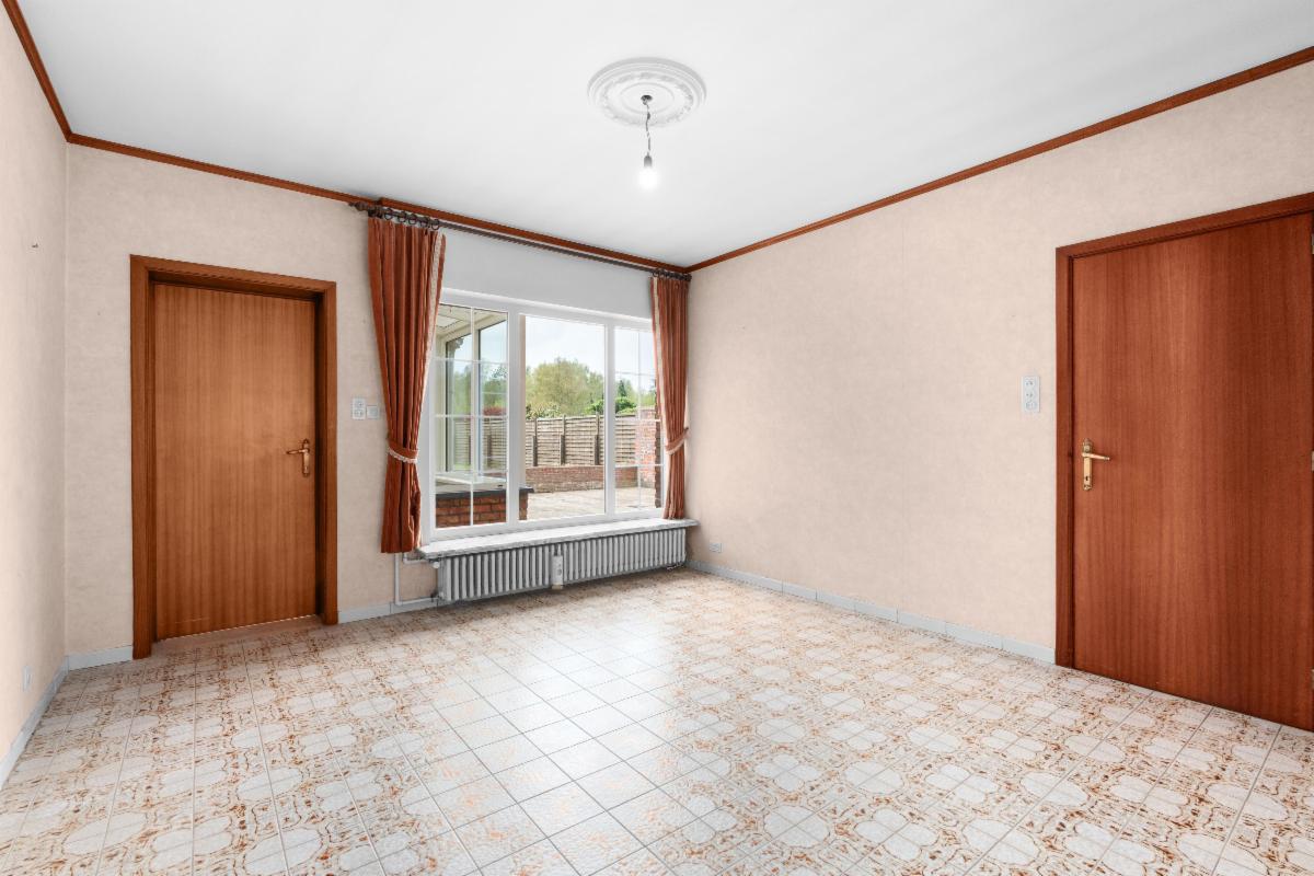 Bij het betreden van de woning komt u in de inkomhal, die toegang geeft tot de gezellige leefruimte. Aansluitend vindt u de keuken en een veranda die uitkijkt op de tuin. Verder beschikt het gelijkvloers over een praktische berging met toegang naar buiten, een apart toilet, een garage met zolder (bereikbaar via een uitschuifbare trap) en een kelder.