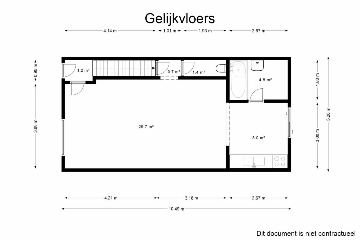 U betreedt de woning via de inkomhal, die toegang biedt tot de woonkamer met keuken.