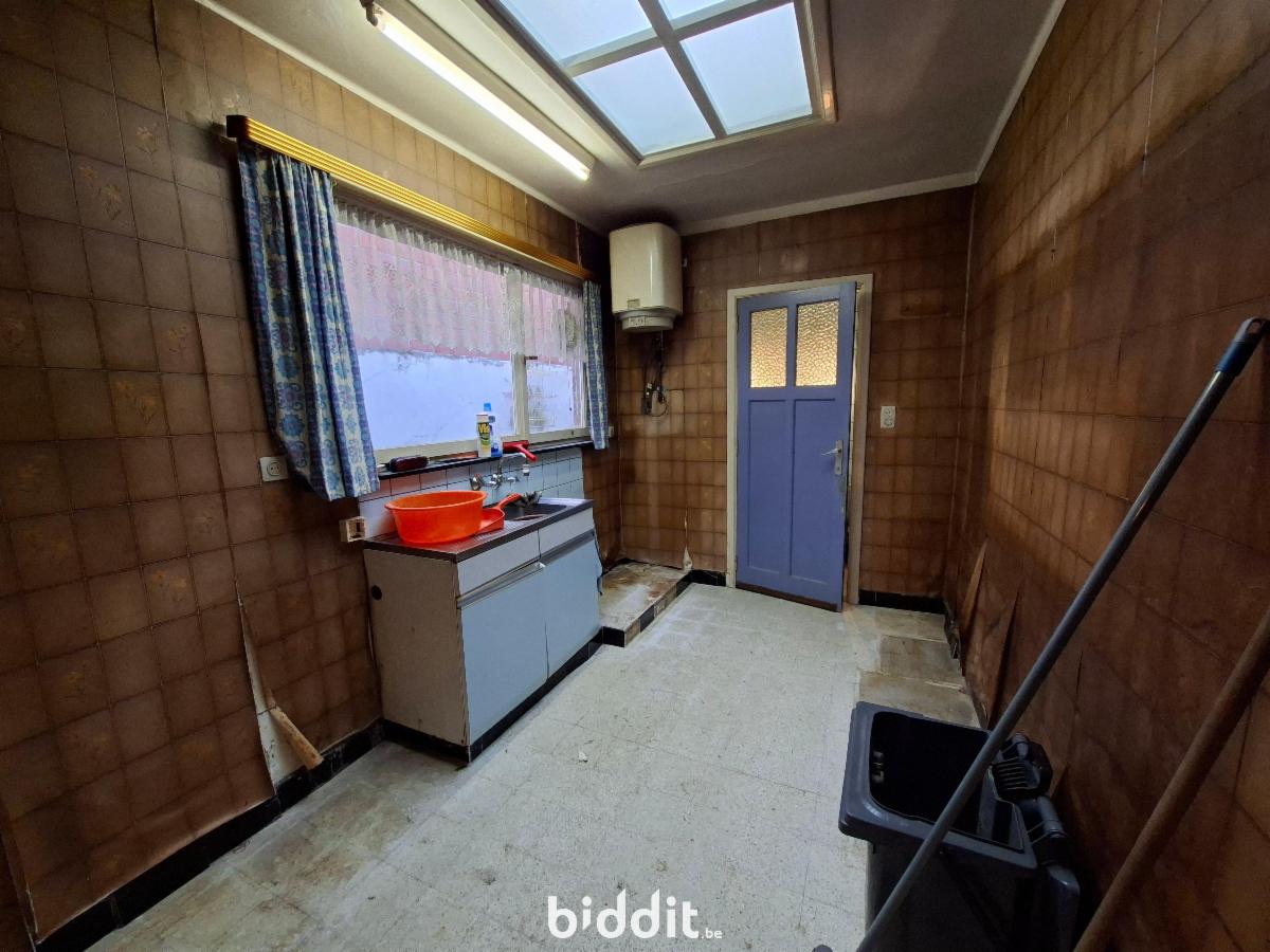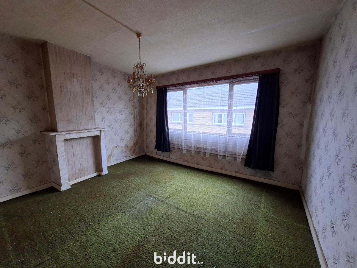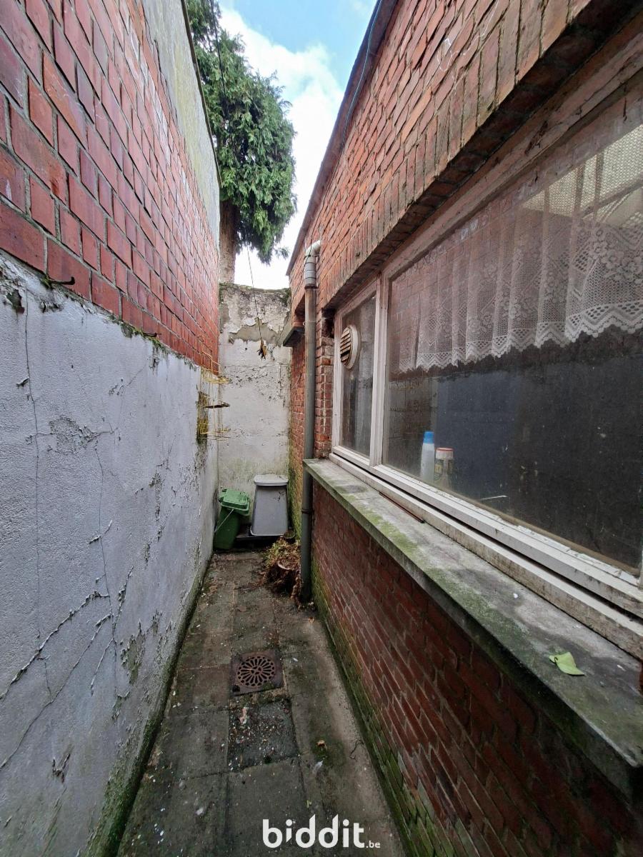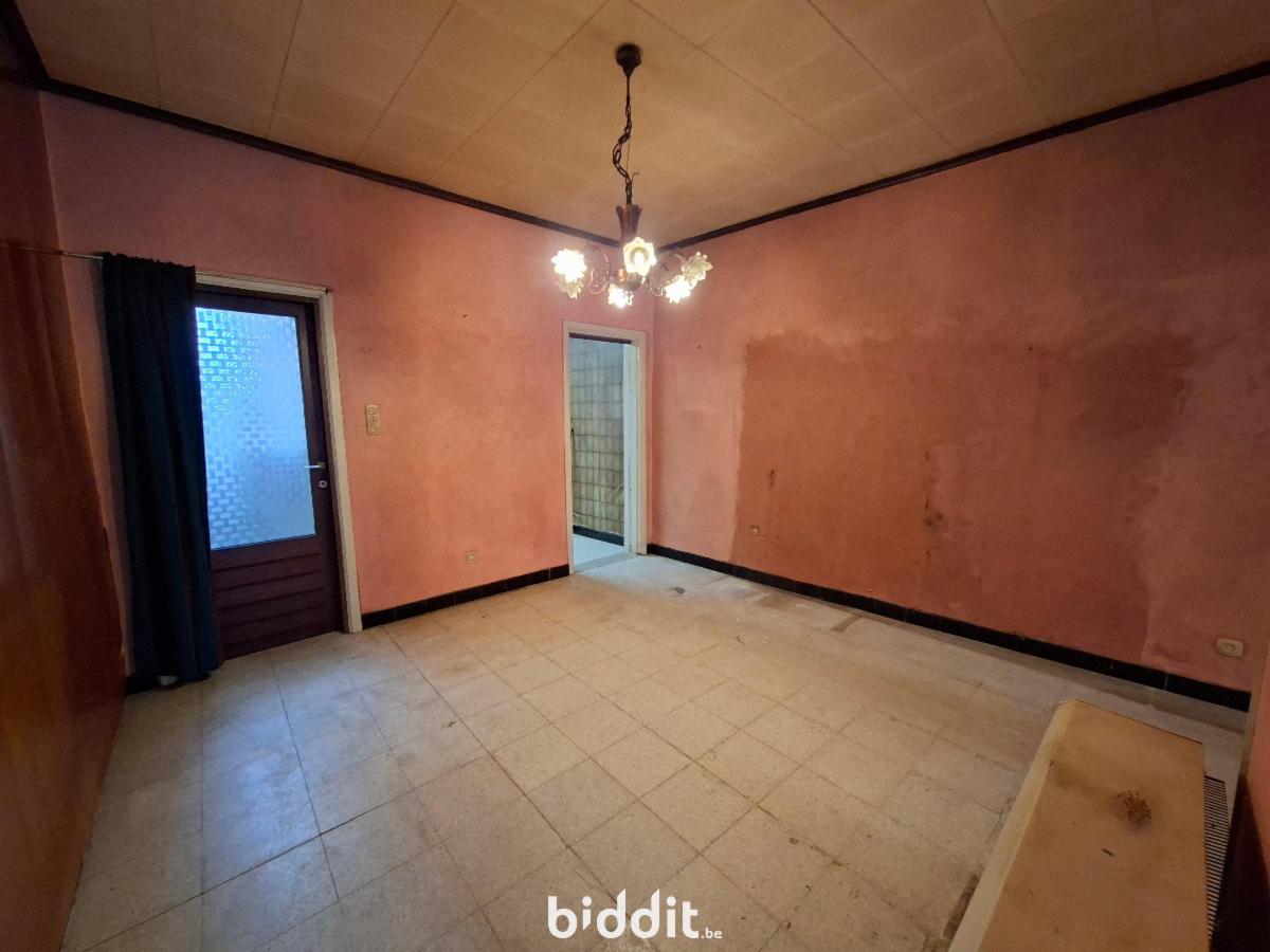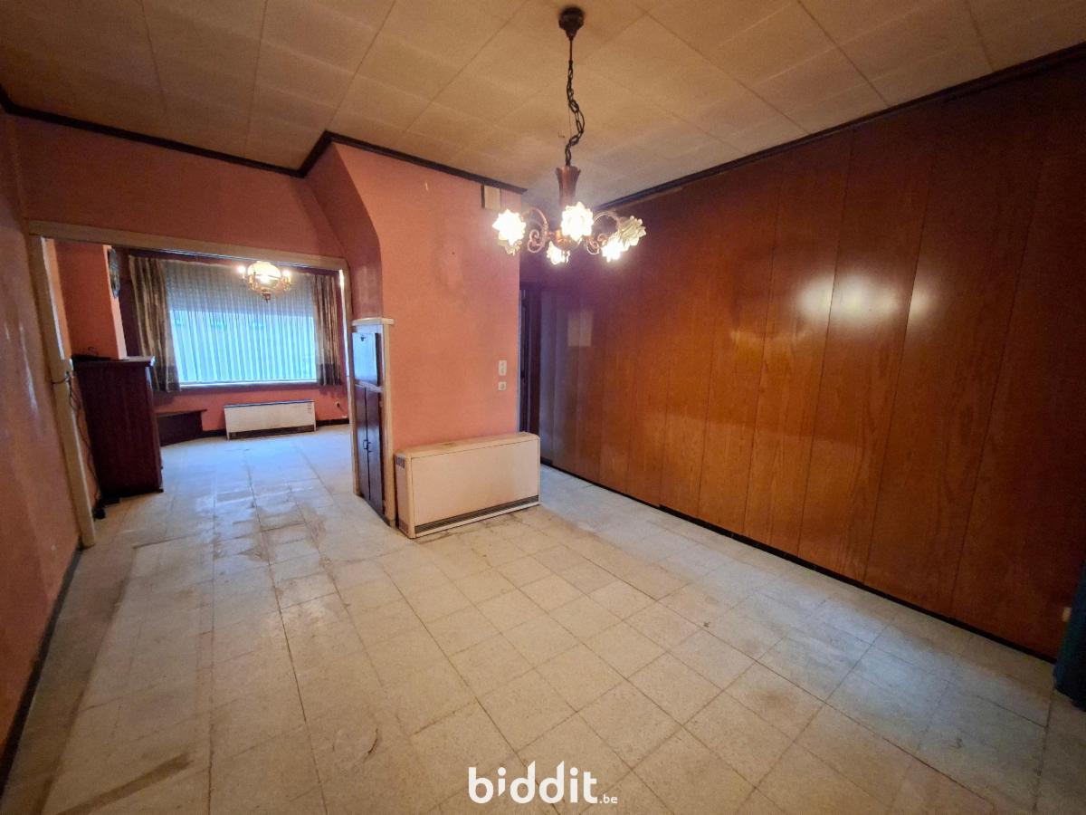 Te renoveren woonhuis in Sint-Niklaas, Moerlandstraat 77. Inkom, woonkamer, keuken, badkamer, koer en tuin. Boven: 2 slaapkamers en zolder. G score: D P score: D