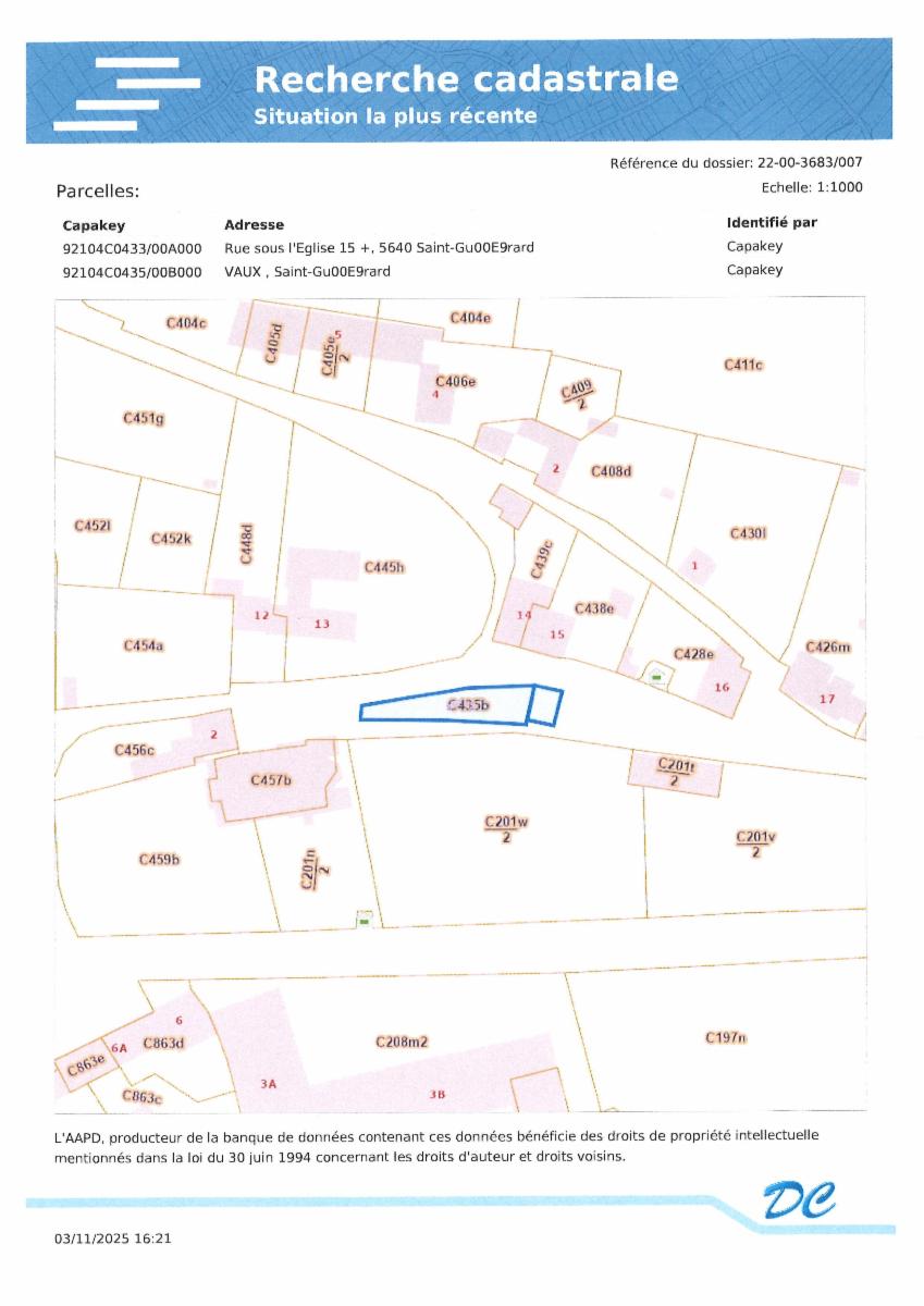 Terrain boisé (talus) de 3 ares 26 centiares à vendre à Saint-Gérard rue Sous l'Eglise (plus ou moins en face du numéro 14). Faire offre à partir de 3.000€