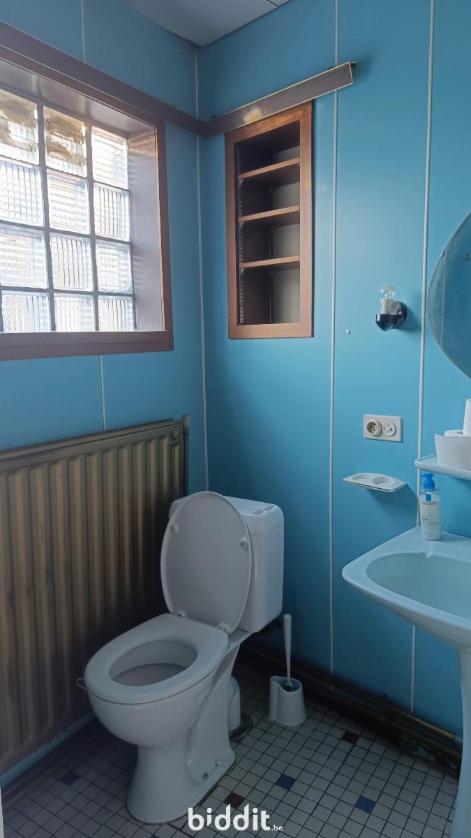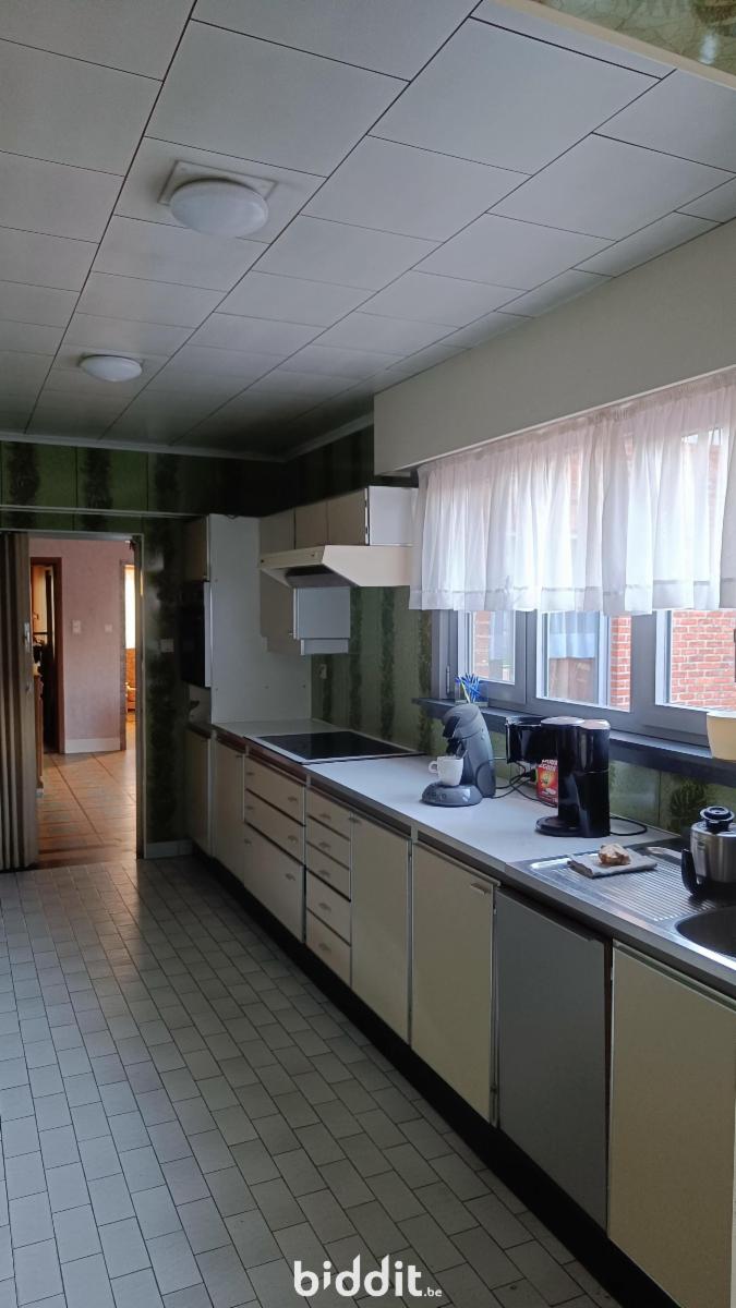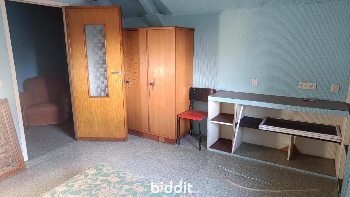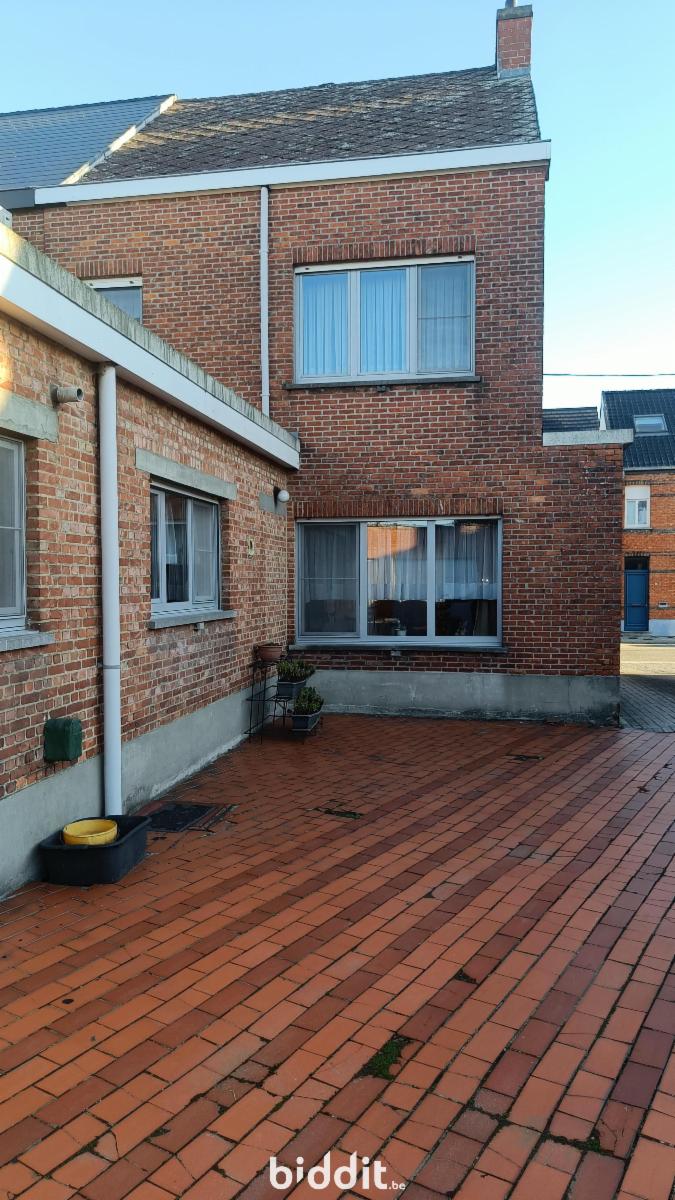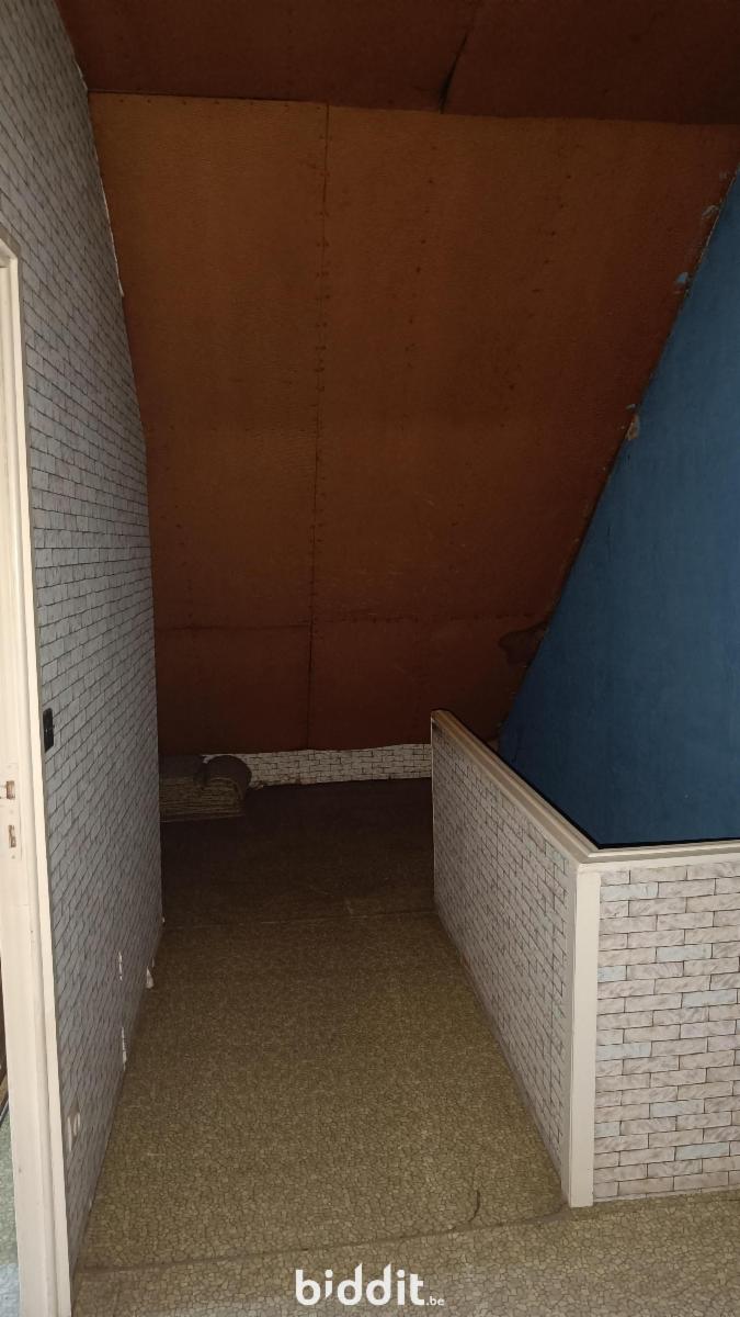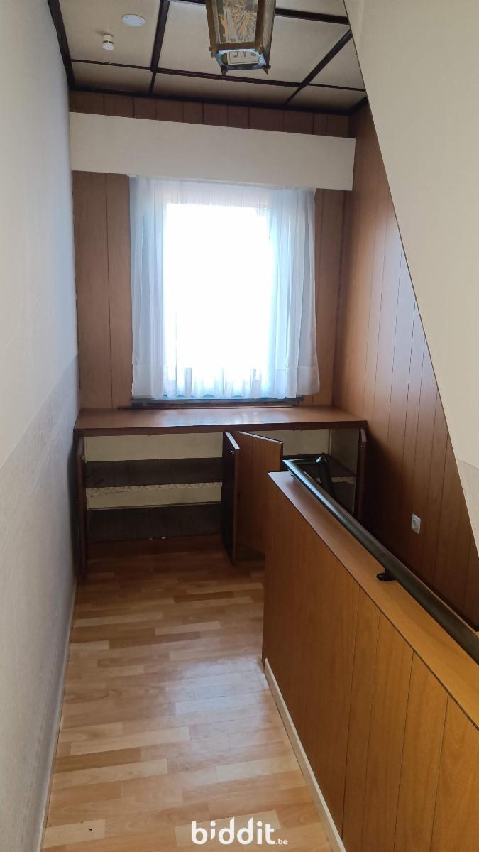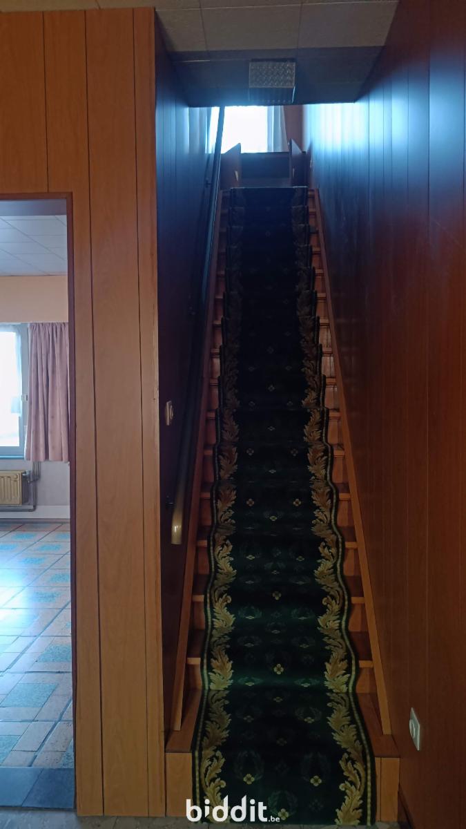Zeer ruime woning : grote inkomhal naar eetplaats en living met achtergelegen keuken en badkamer. Achteraan bevindt zich nog een ruim bijgebouw (garage), achter welk gebouw zich een grote tuin bevindt. Tevens is er een kelder. Op de eerste verdieping zij er 2 ruime slaapkamers terwijl er nog een vaste (steile) trap naar de zolderverdieping is met nog een extra slaapkamer en opbergruimte.