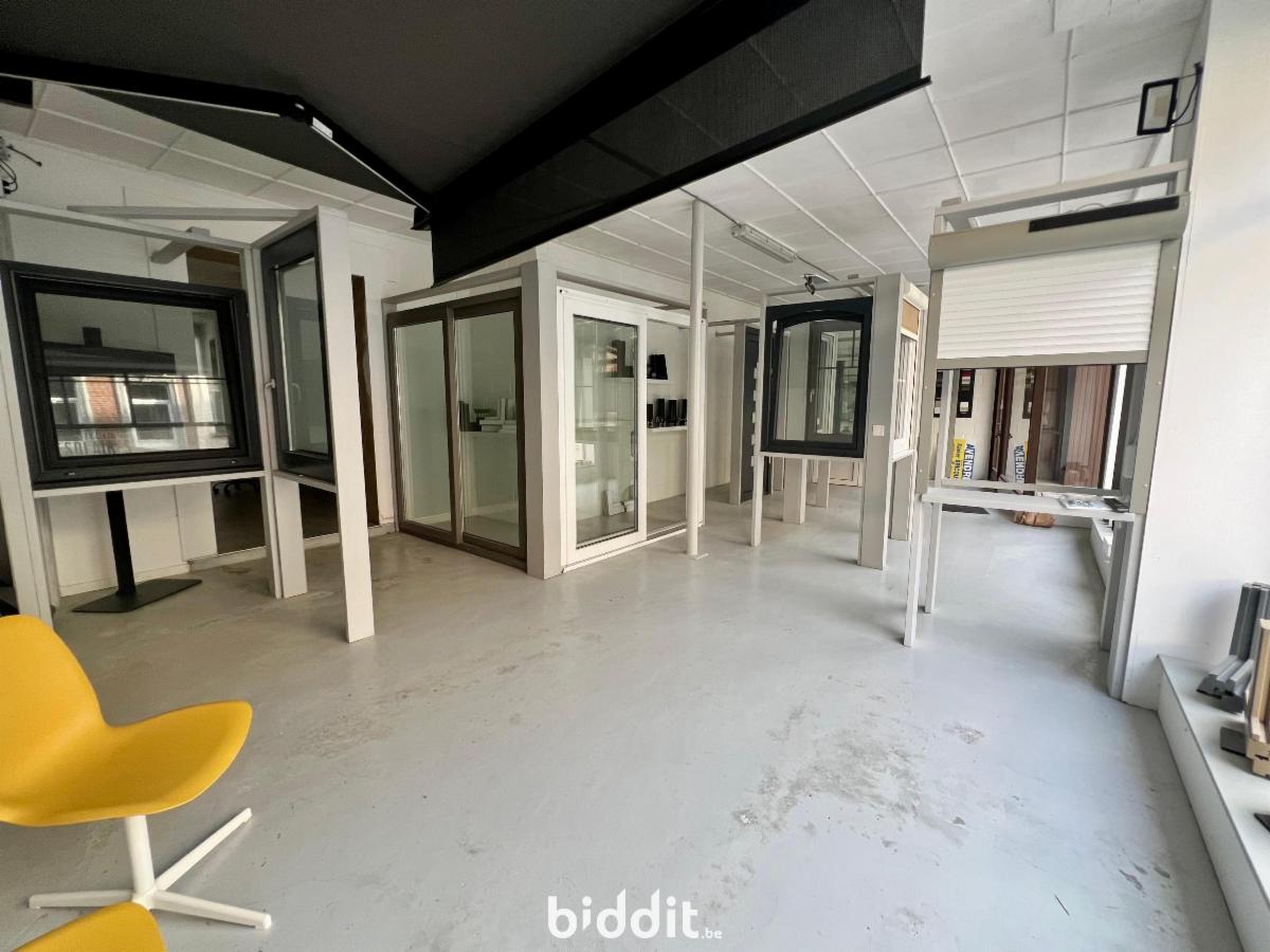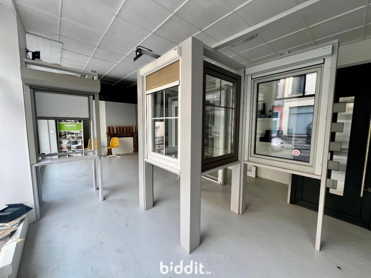 * rez : surface commerciale avec showroom et bureau + partie privée composée d'un salon avec feu ouvert, cuisine, salle de bain (avec wc, évier et douche, et annexe)
