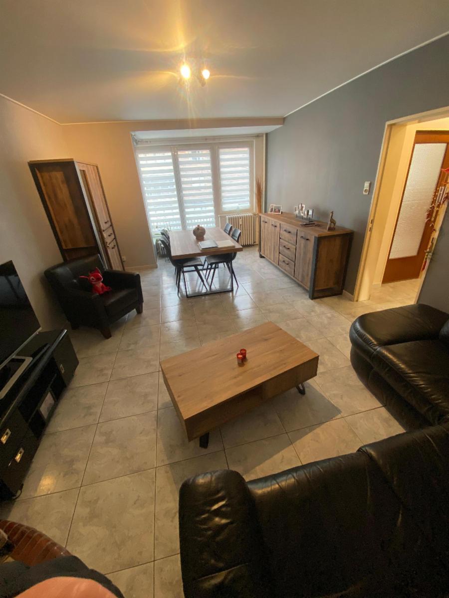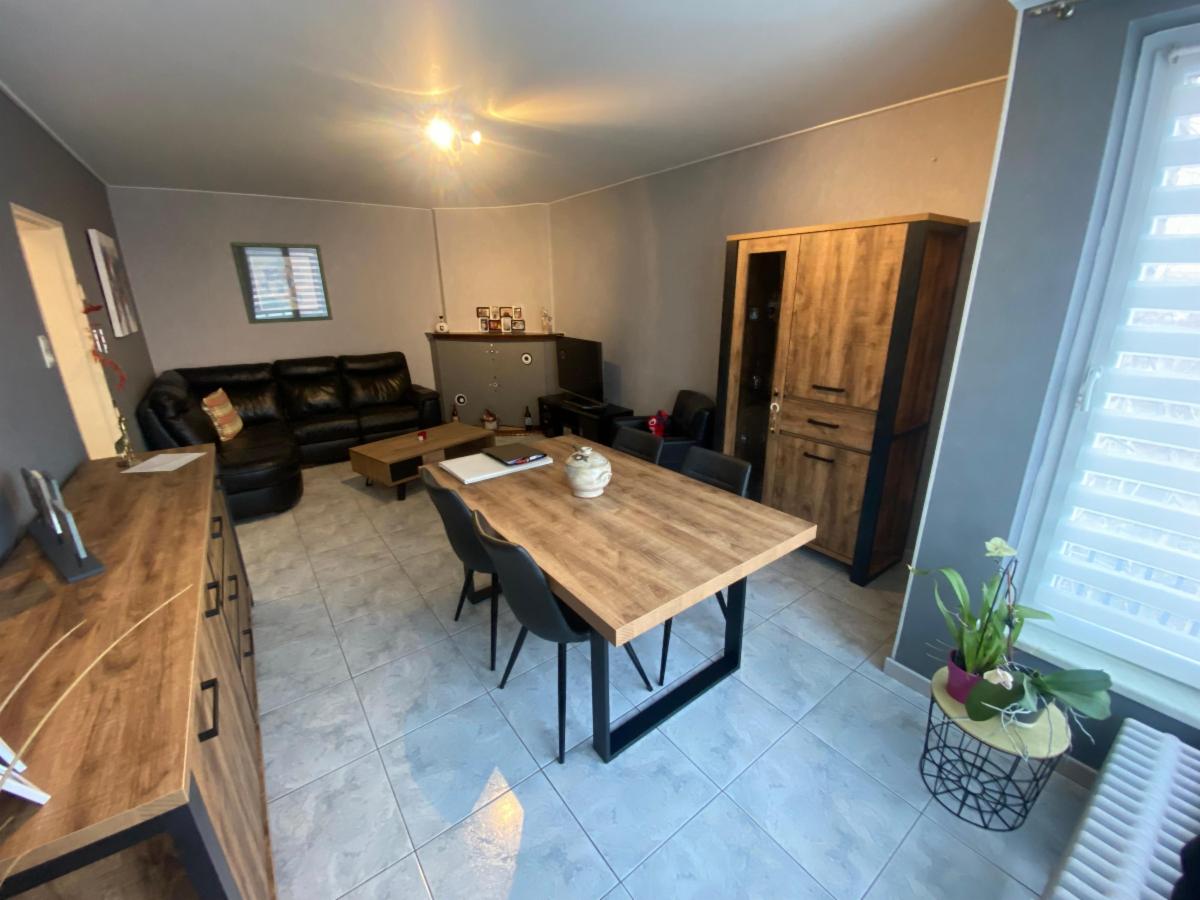 1er étage : Hall, wc, living, salle de bain, cuisine avec balcon, 2 chambres (une côté rue et une côté cour).