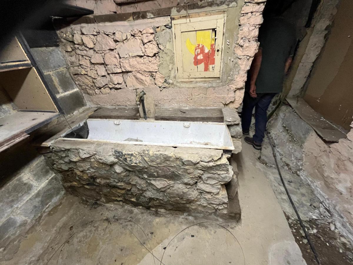 Ppierres du pays et blocs béton, sous-sol : cave, rez : local salle de fâtes, 1 pièce façade, étage : 3 pièces, combles : grenier non aménagé et non isolé