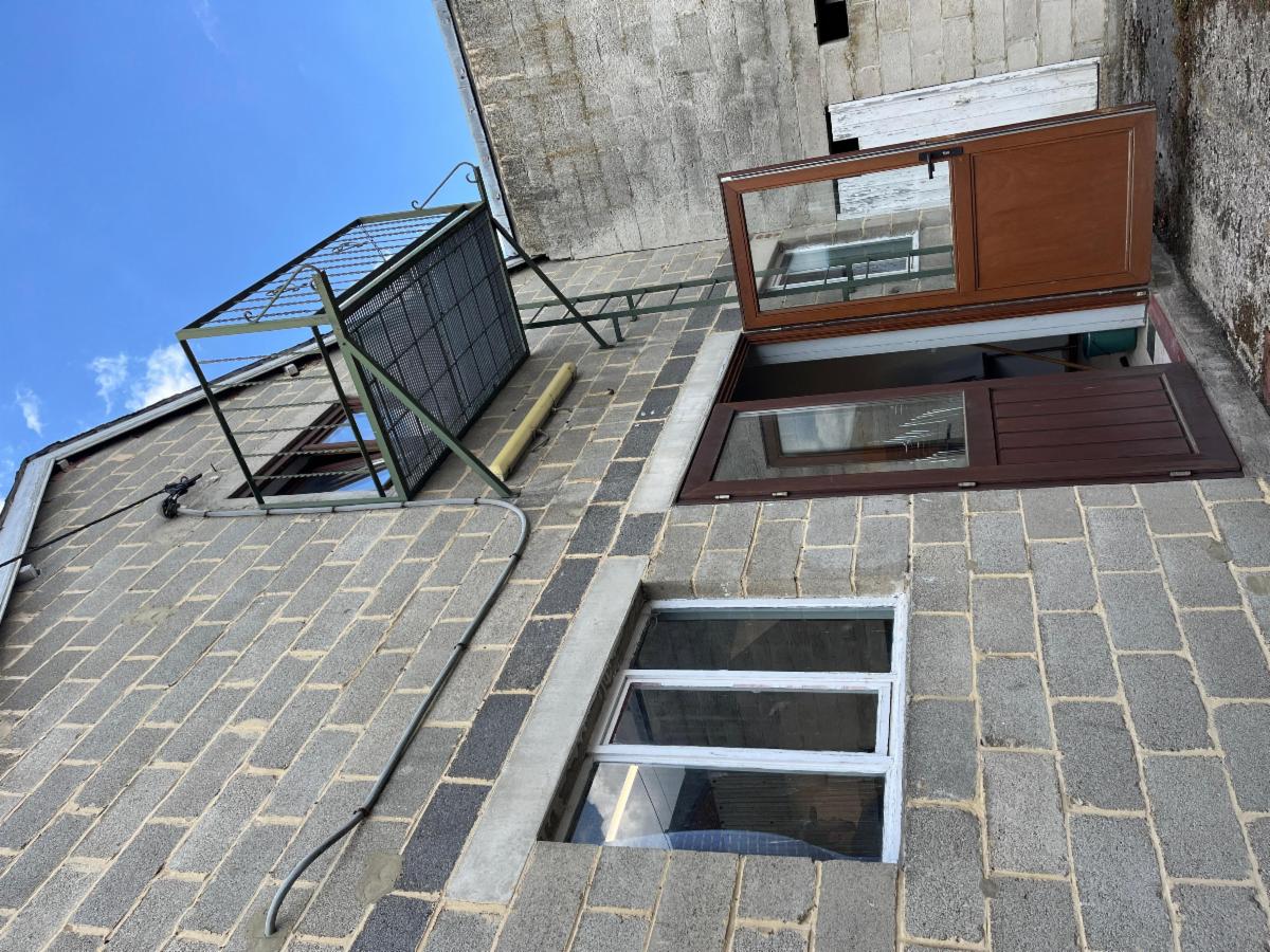 (sous-sol : caves (état brut rustique : pierres rejointoyées et voussettes briques), rez : grand living (+- 50 m2), arrière cuisine, bureau, 1 pièce façade, WC dans cour arrière, étage : 5 chambres (dont 2 petites mansardées), combles : 2 pièces (isolation stirodur), Libre occup, Commodités : eau de distribution, chauffe eau gaz Vaillant, chauffage central mazout