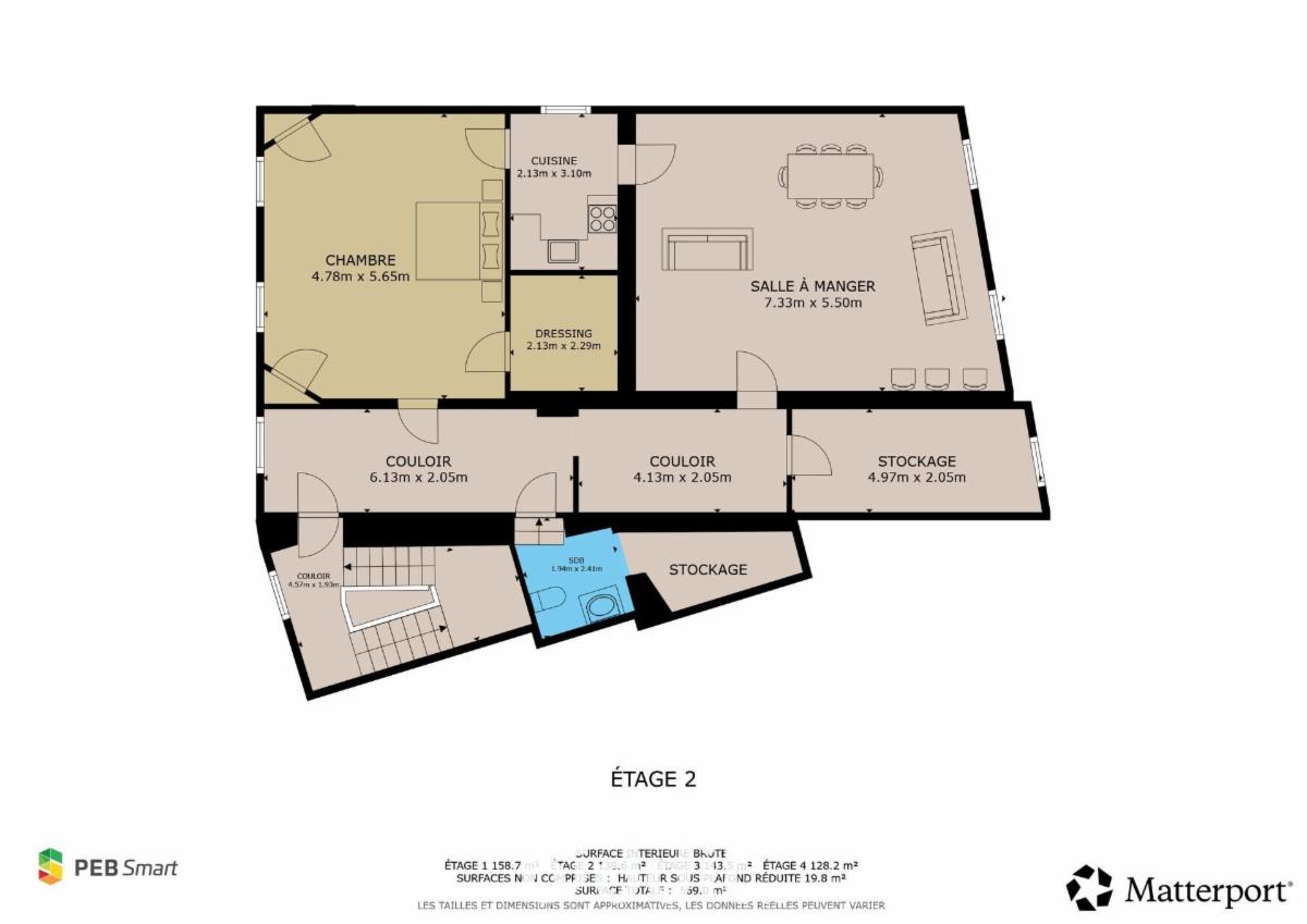 1er étage : Séjour, grande chambre, cuisine, sdb.