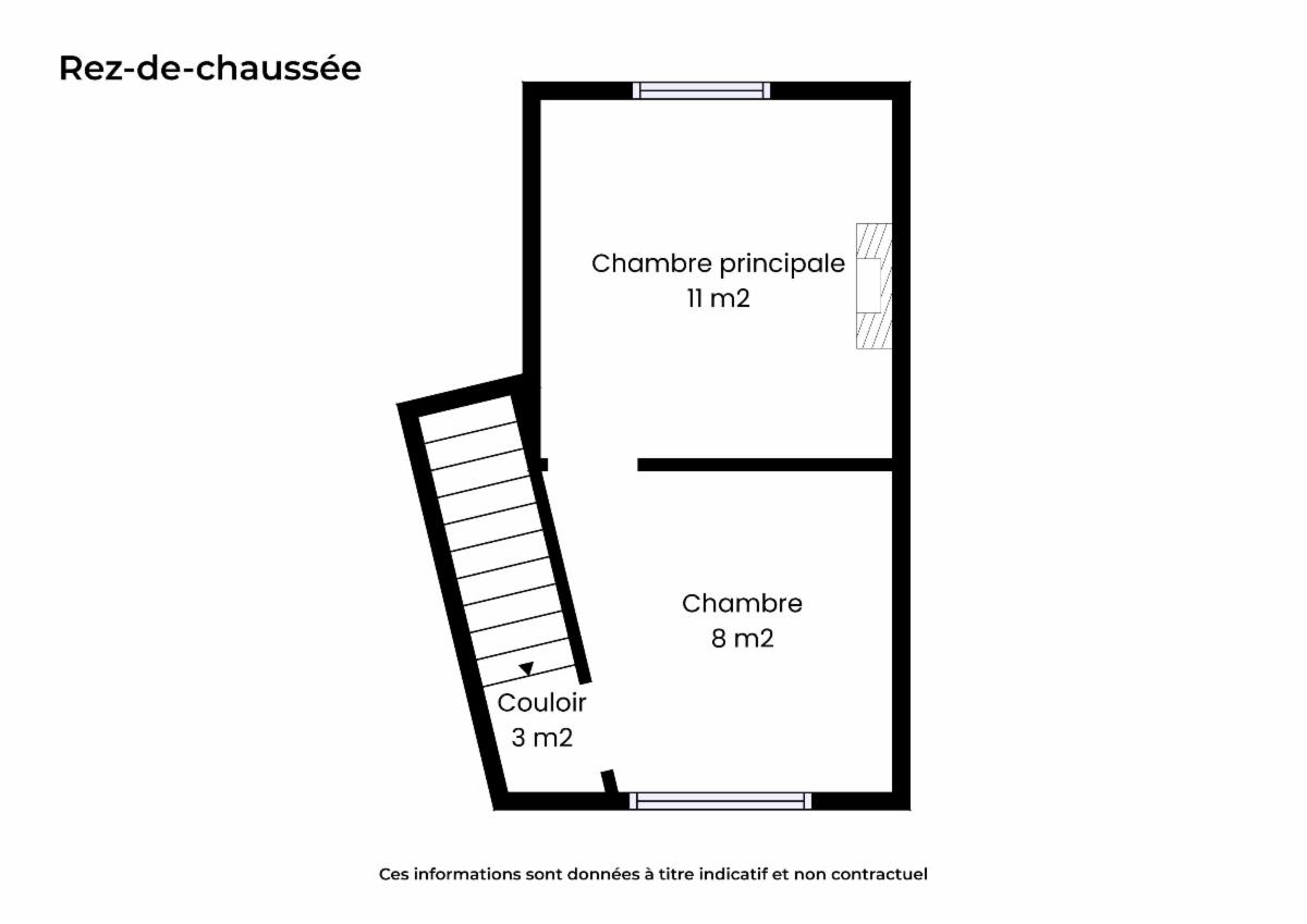 – au 2e étage : une chambre et une salle de bain ;