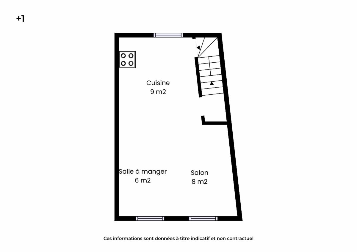 – au 1er étage : une cuisine, une salle à manger et un salon ;