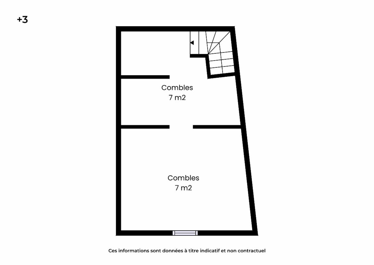 – aux combles : deux espaces sous toiture.