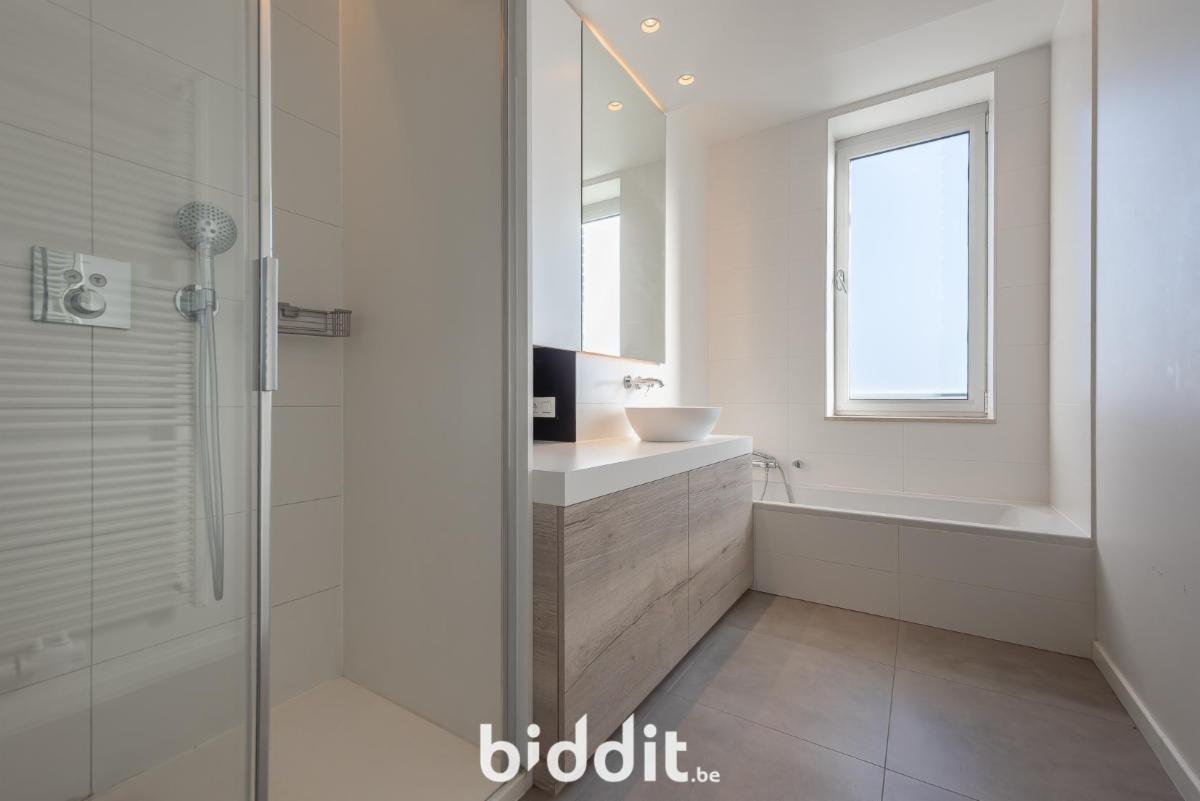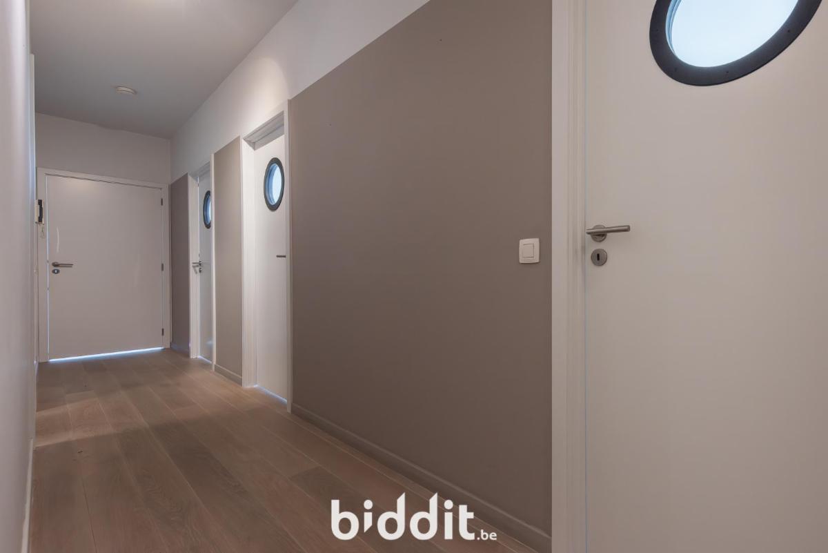 Het appartement beschikt over 3 slaapkamers, waarvan 2 met kamerhoge ingemaakte kasten voor extra opbergruimte. De badkamer is stijlvol ingericht met een douche, lavabo en ligbad. Verder zijn er praktische bergruimtes voorzien, zoals een vestiairekast in de inkomhal en een aparte berging.