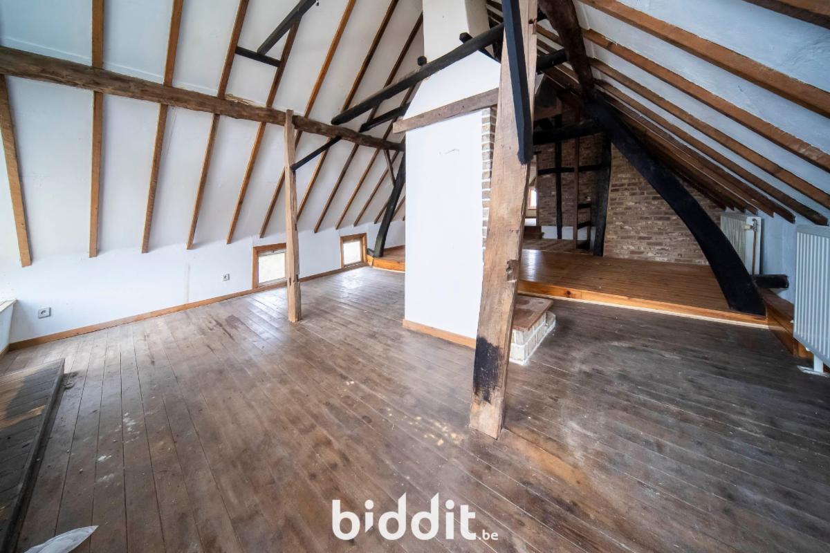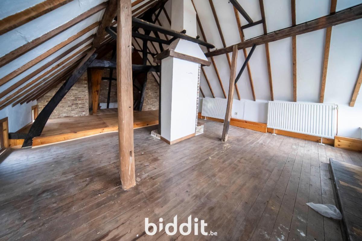 Hoeve met inkom, keuken, wc's, living, berging, 3 slaapkamers, garage en grote zolderruimte. Gelegen vastgesteld bouwkundig erfgoed.