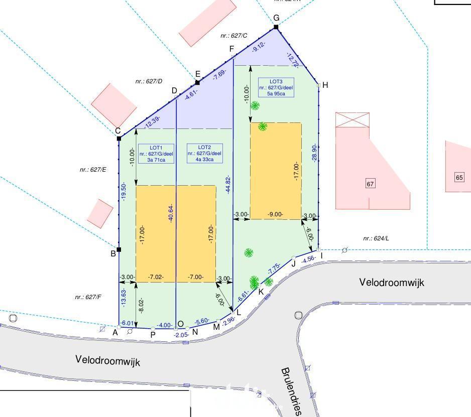 De bouwgrond is gelegen in de Velodroomwijk, links naast huisnummer 67 (lot 3 van de verkaveling). Met een perceelbreedte van 18,92 meter (schuin) biedt dit perceel alle mogelijkheden voor het oprichten van een vrijstaande ééngezinswoning volledig naar eigen smaak en wensen.