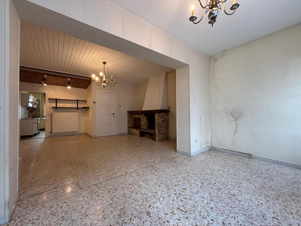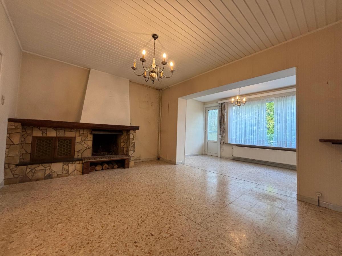 Hall d’entrée, wc et lavabo, cuisine semi équipée, salle à manger et salon (avec feu ouvert)