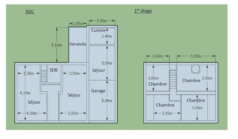 1er étage : un hall de nuit et 4 chambres (+/- 13m² - 15m² - 18m² - 19,7m²).