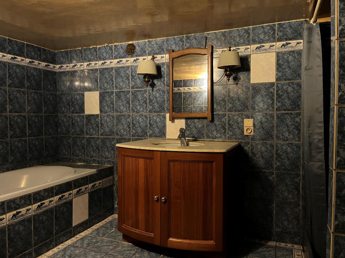 Rez-de-chaussée : un hall d'entrée, 2 séjours (+/- 30,5 m² et 32,6m²), une salle de douche, une salle à manger (+/- 19,2m²), une cuisine (+/- 9,2m²), une véranda (+/-13m²) et un garage (+/- 22,4m²).