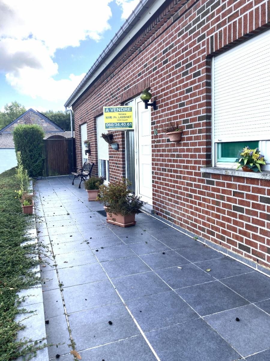 Rez-de-chaussée : hall avec grand placard, living, cuisine équipée, véranda, buanderie, chambre, bureau, salle de bain, WC.