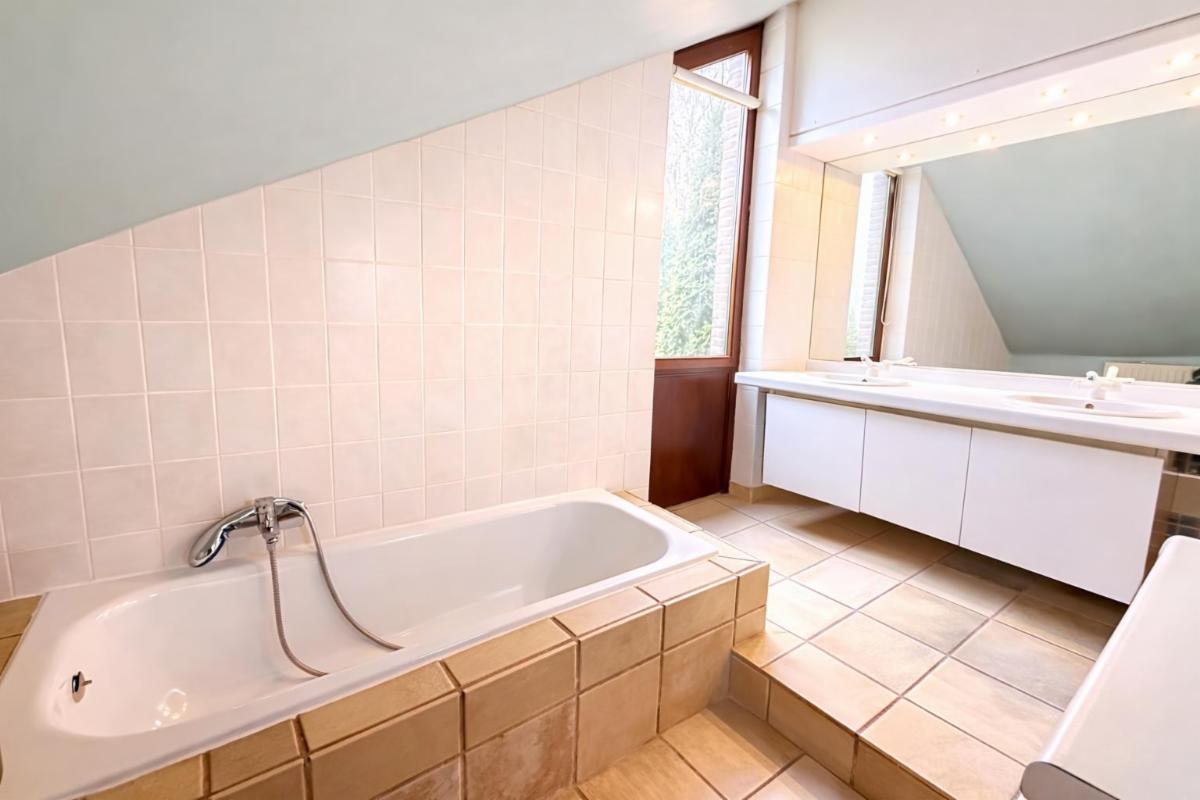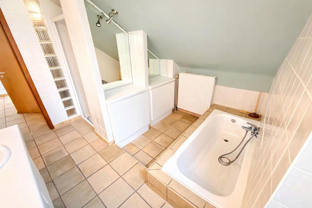 À l’étage, vous découvrirez trois belles chambres à coucher, dont deux avec mezzanine, ainsi qu’une salle de bains équipée d’une baignoire, d’une douche, d’un double lavabo et un WC séparé.