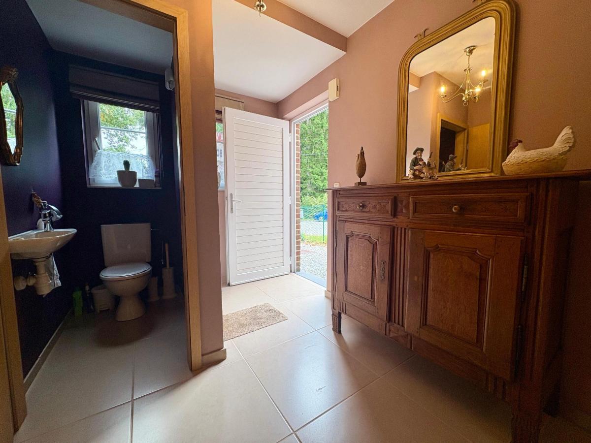 -Rez-de-chaussée : hall d’entrée, WC séparé, cuisine équipée ouverte sur le séjour.