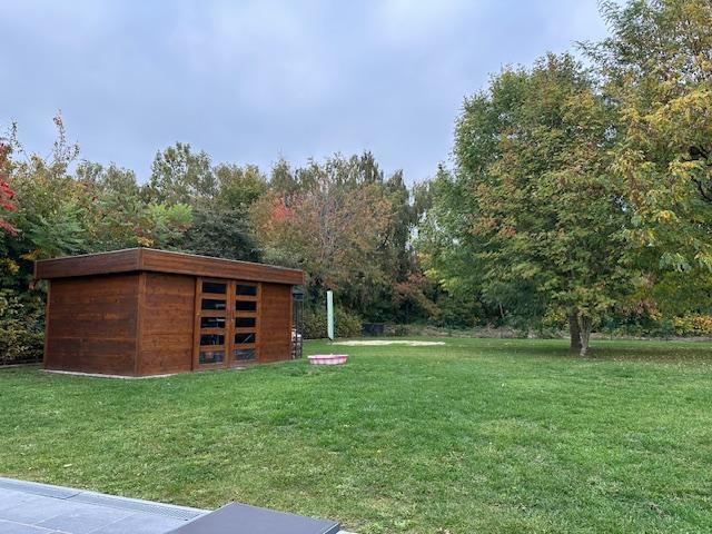 Equipements: vaste jardin clôturé, terrasse, garages avec portes automatisées, emplacement de parking, portail avec vidéophone et ouverture à distance, toiture en bon état avec une isolation récente; châssis en PVC double vitrage, volets (manuels et électrique), chauffage central au gaz, production par la chaudière et/ou par boiler thermodynamique, panneaux photovoltaïques; citerne; abri de jardin, portail de jeu pour enfants, détecteurs incendie; raccordement à l'égout, adoucisseur, ventilation, PEB C.