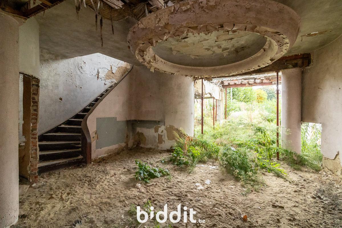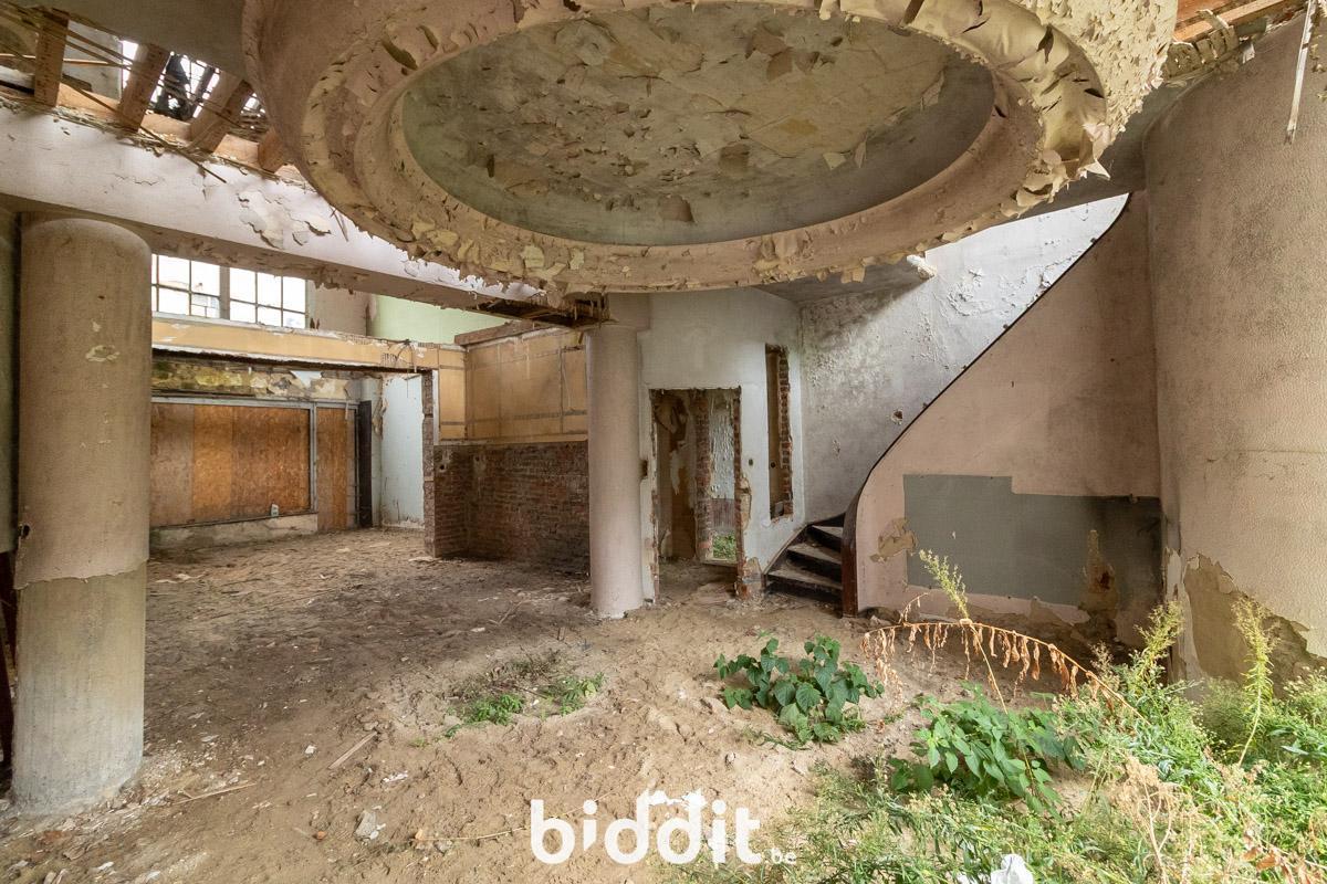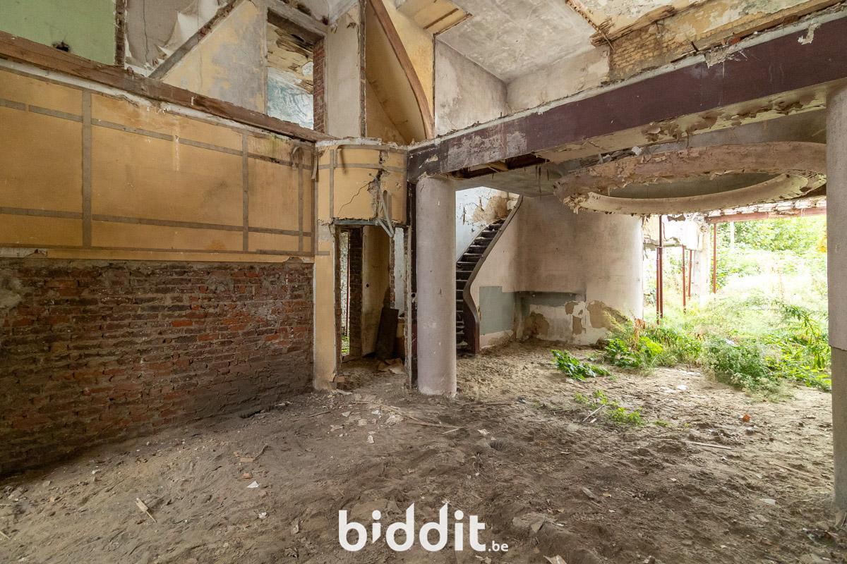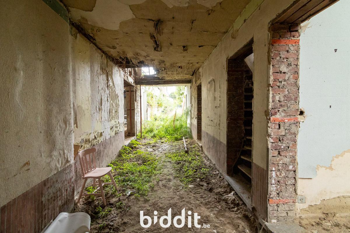 - 1e verdieping: geen vloer meer, momenteel 1 open ruimte met gelijkvloers