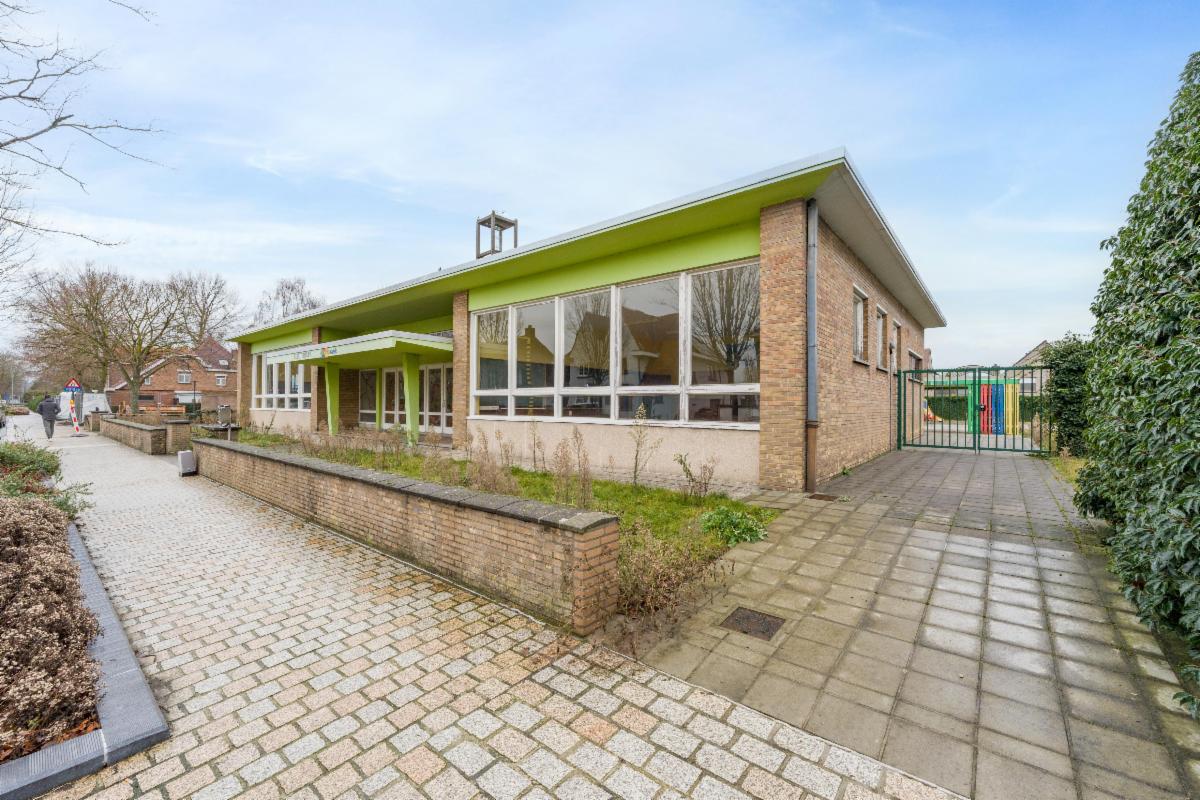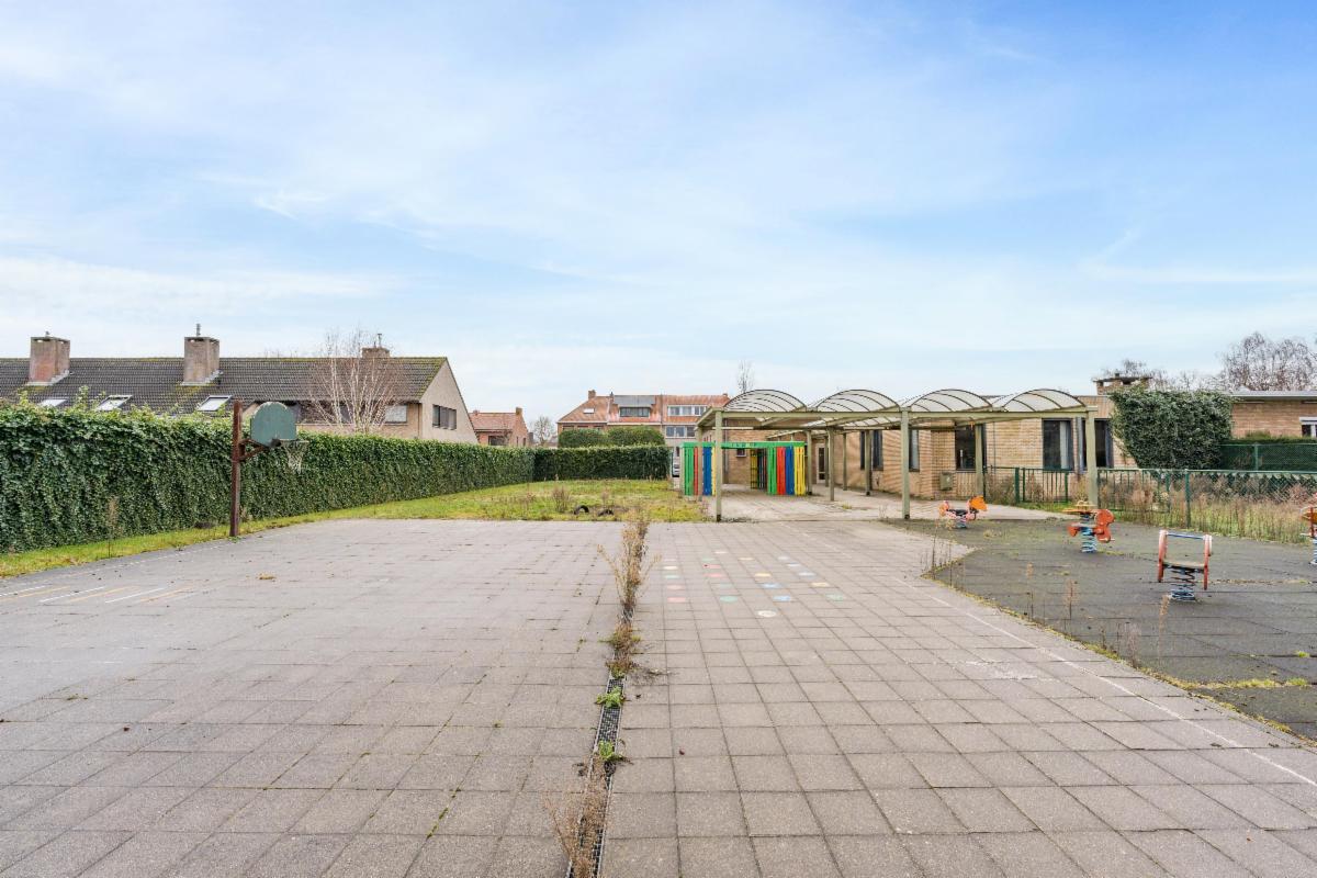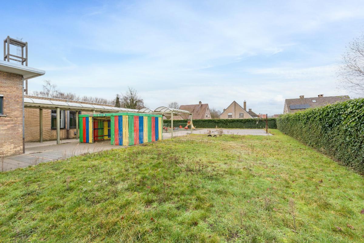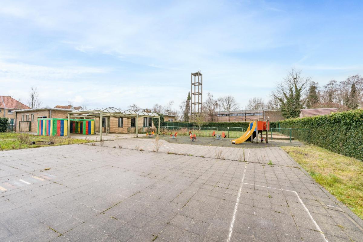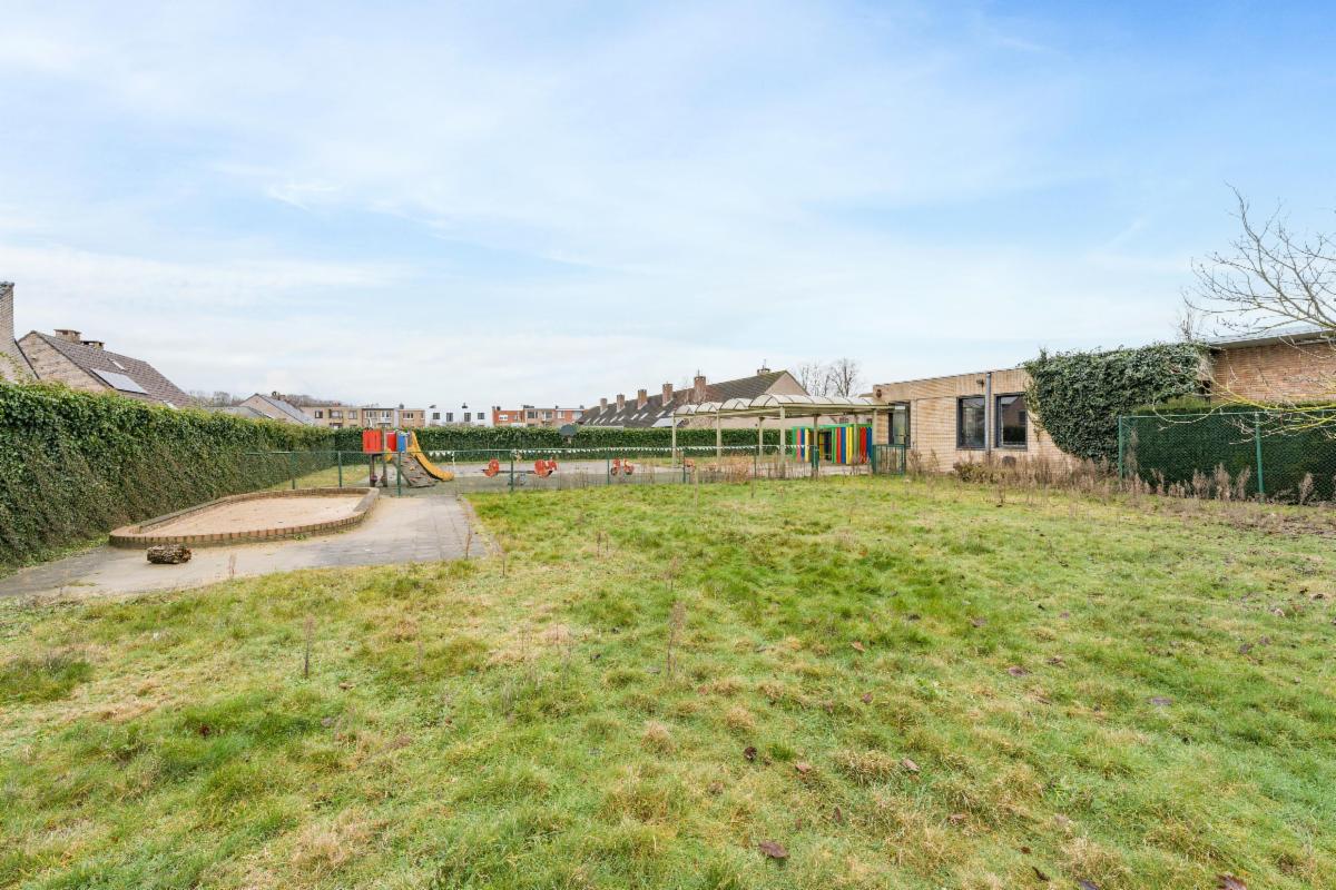 - een gelijkvloers waar zich de binnenspeelruimte, 2 klaslokalen, opvangklasje, een ontspanningsruime met bar en de kindertoiletten bevinden
