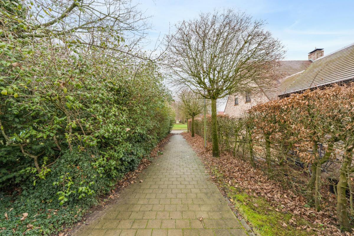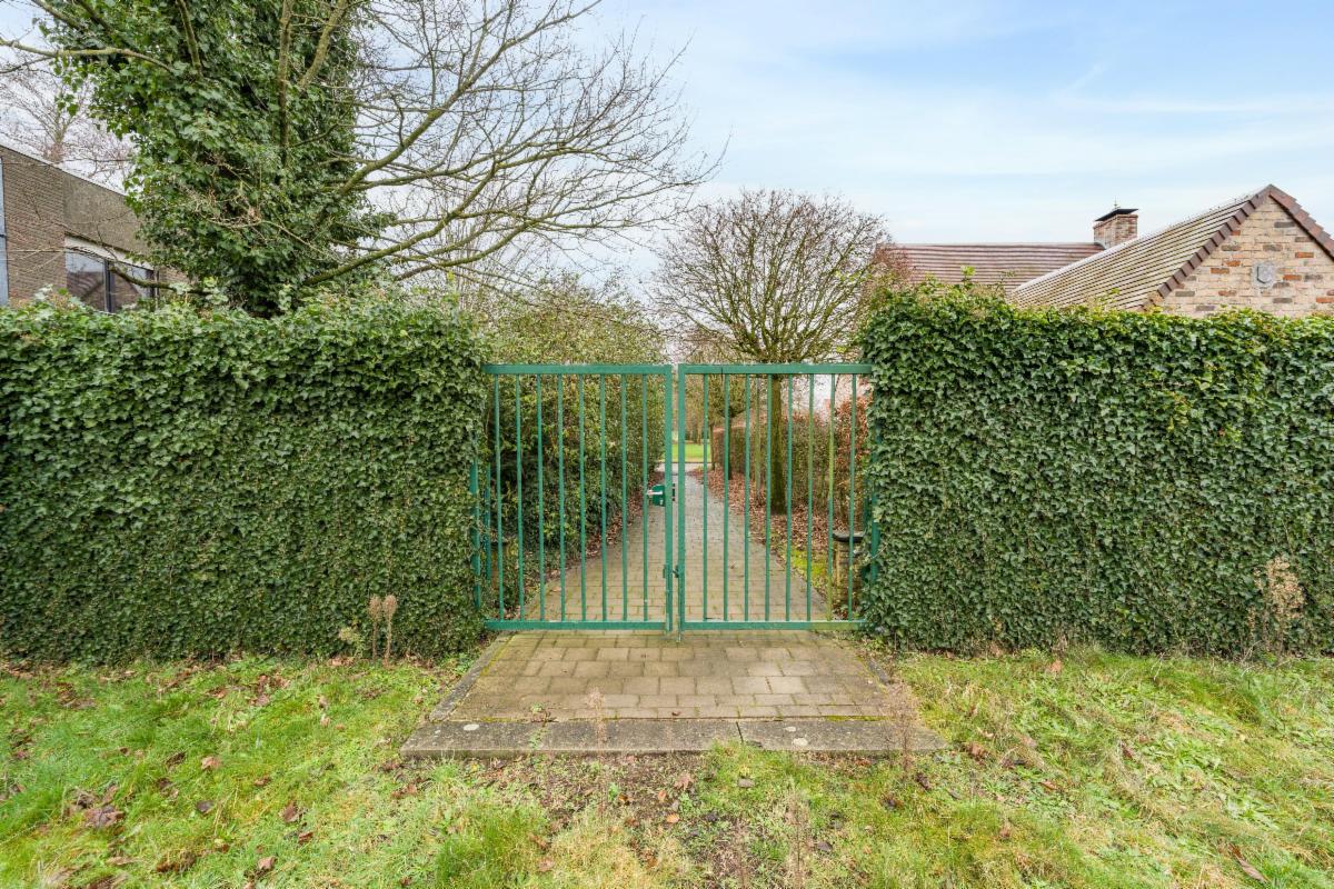 Aan de linkerzijde van het schoolgebouw bevindt zich een verharde strook. Vooraan het gebouw bevindt zich een tuinstrook. Aan de rechterzijde is een groene zone en een poort om de speelplaats te betreden, dewelke deels bestaat uit een graszone en deel verhard is. Achteraan het perceel is een poort met uitweg naar het Wiedauwbos.