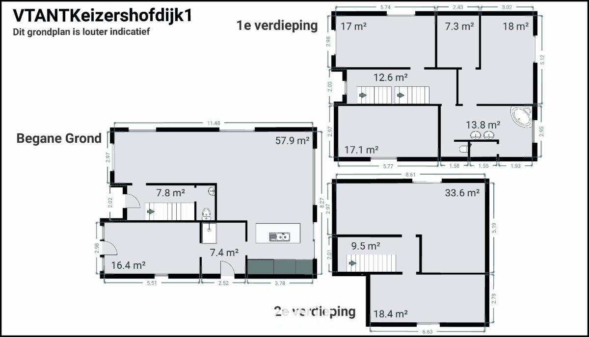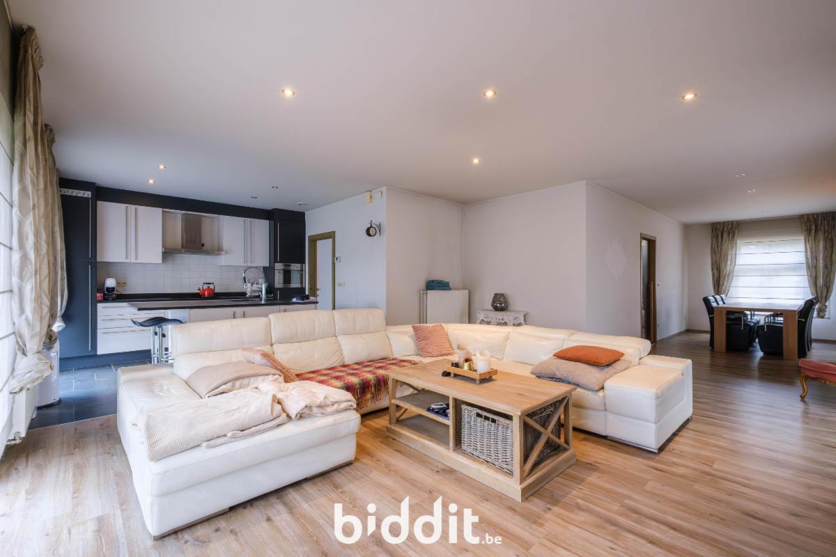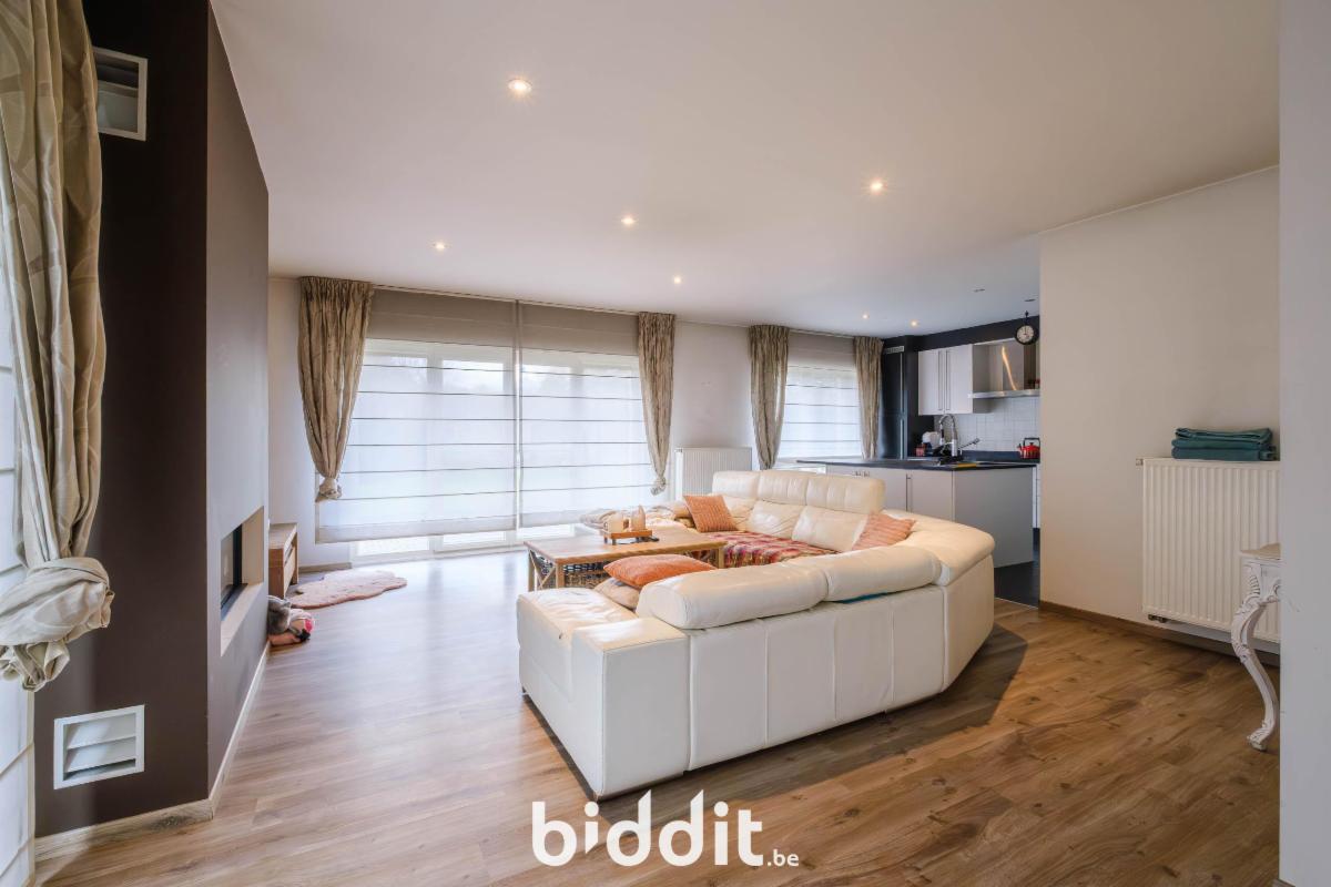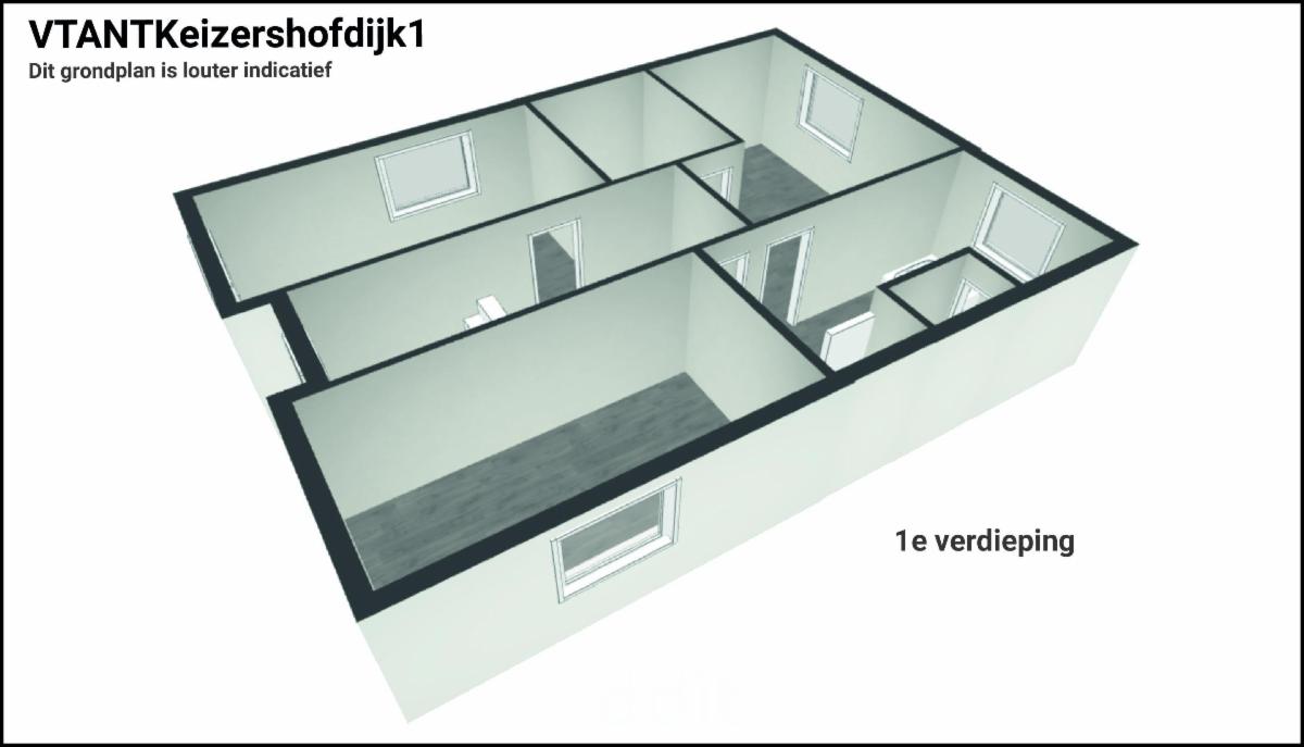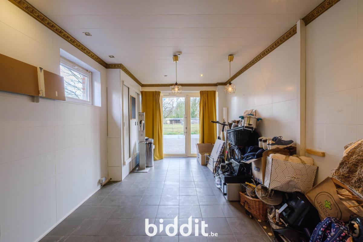 - gelijkvloers: inkomhal met trap naar 1e verdieping, toilet, leefruimte met open keuken, berging, garageruimte die thans dienst doet als bureelruimte;
