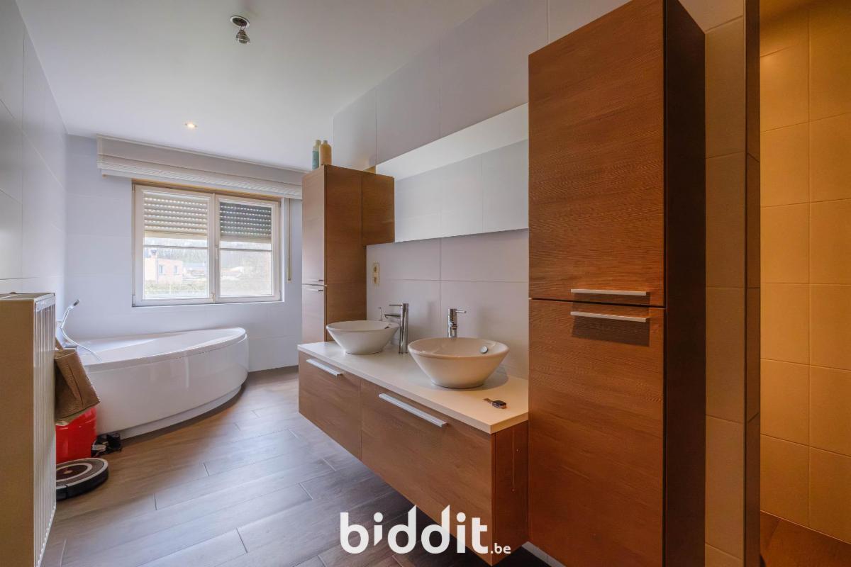 - eerste verdieping: nachthal met trap naar zolderverdieping, slaapkamer 1 met aansluitende dressing en badkamer (dubbele lavabo, ligbad, douche, toilet), slaapkamer 2, slaapkamer 3;