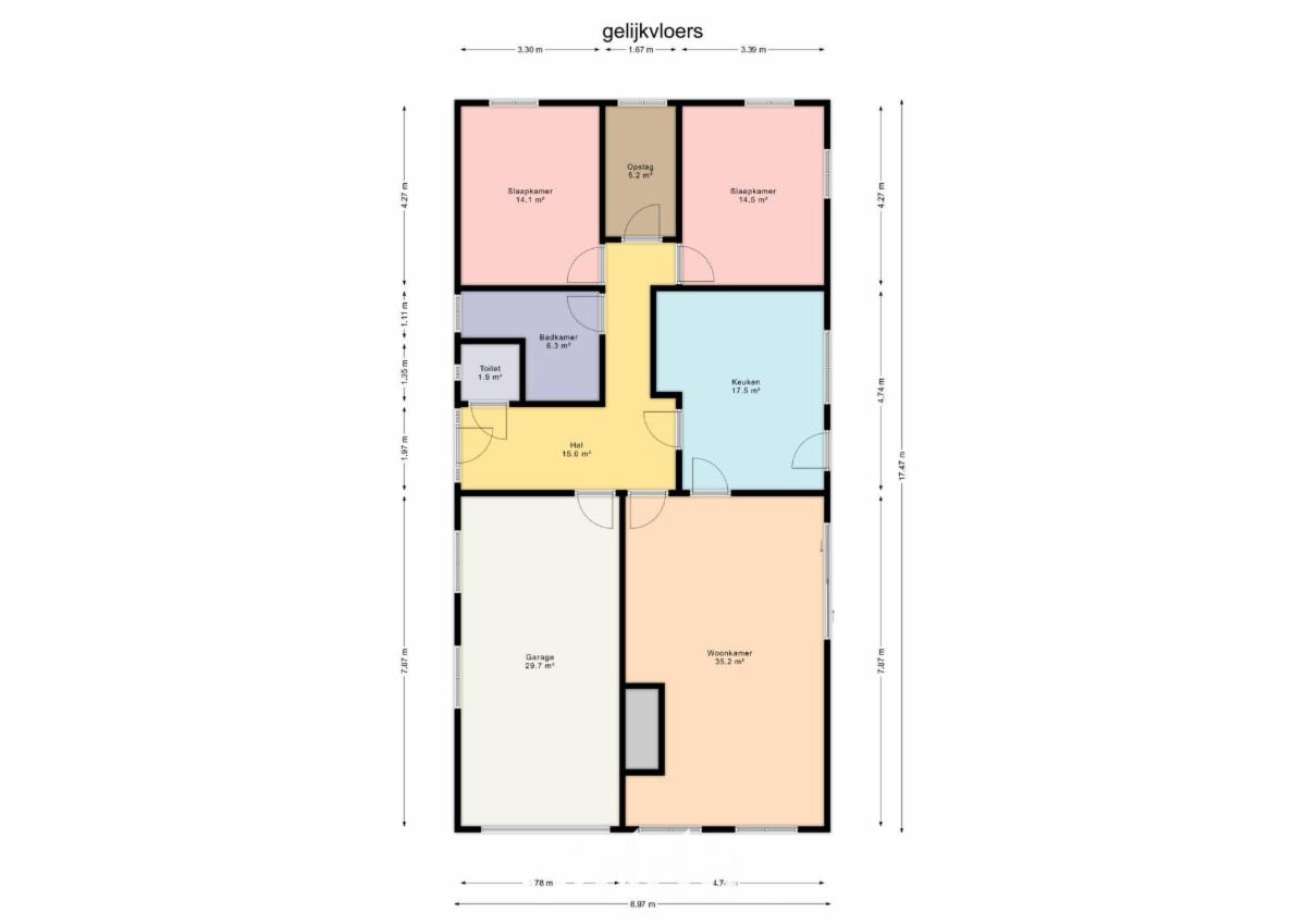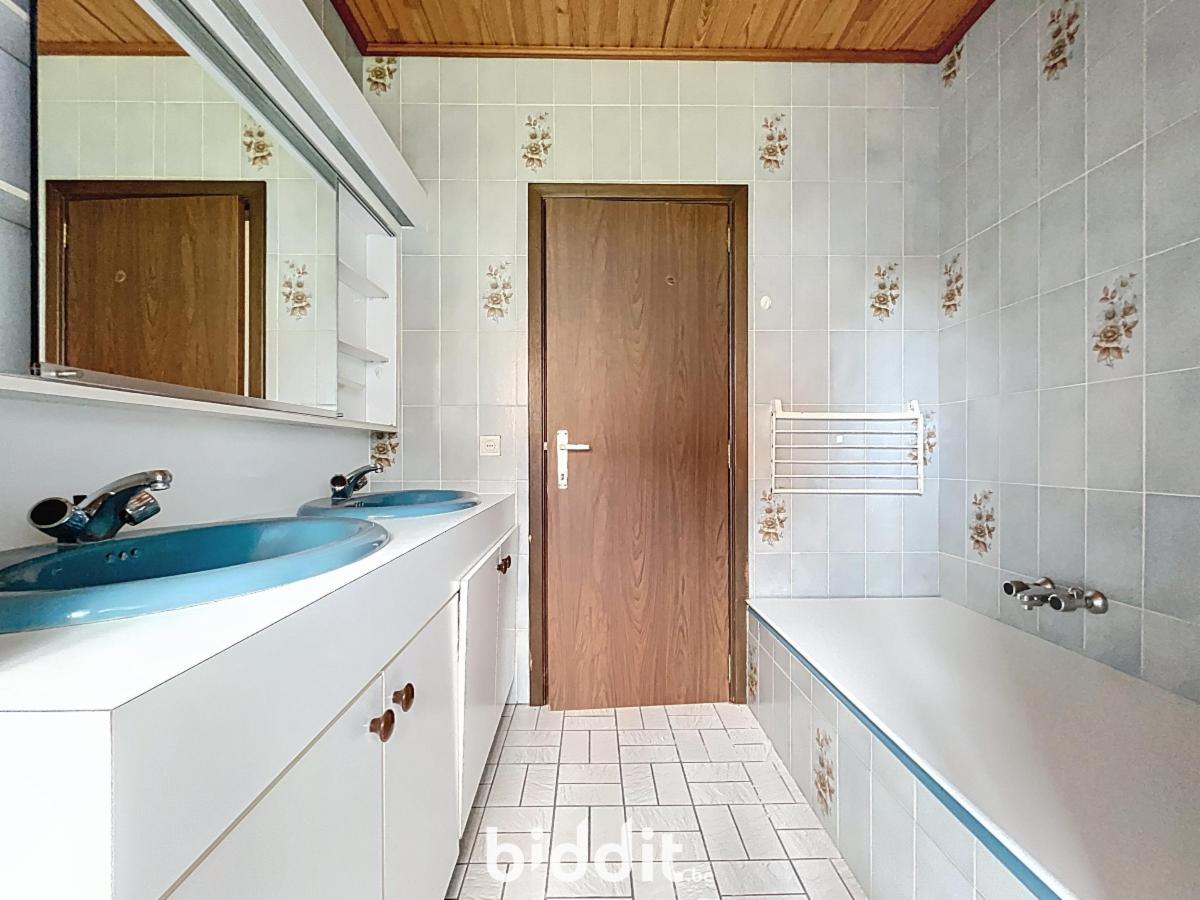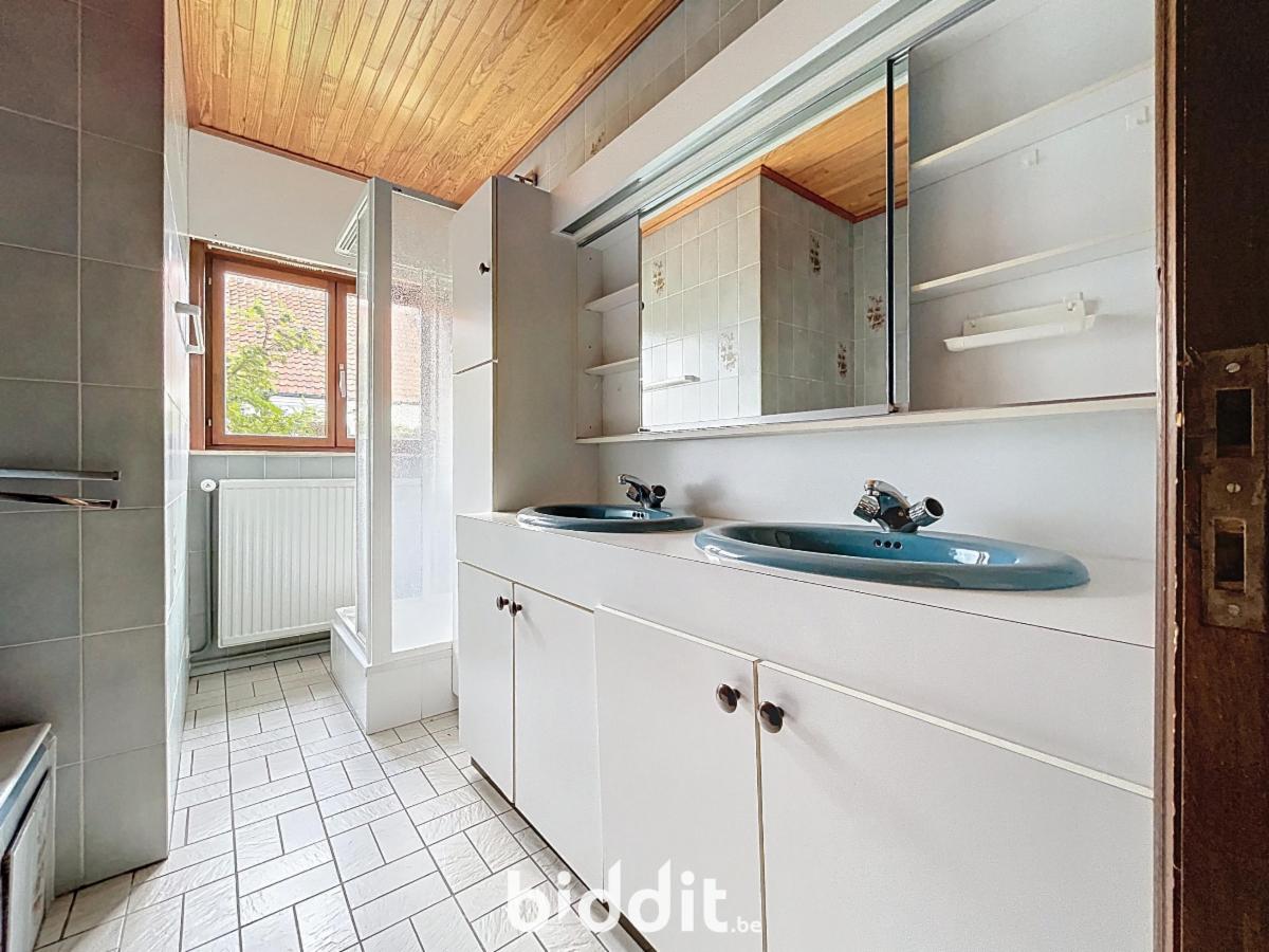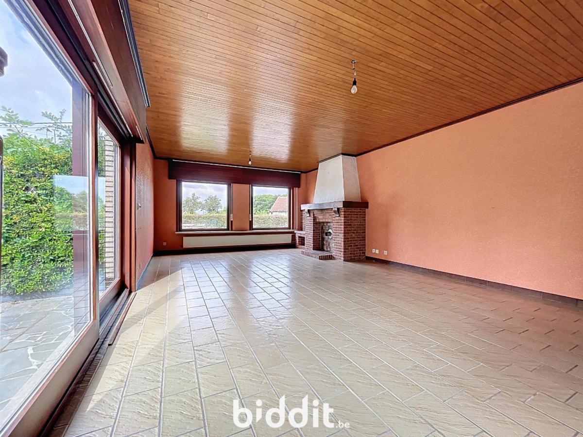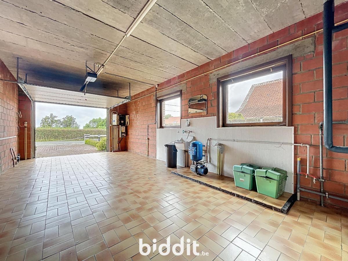 U komt deze woning binnen via de centrale hal waarrond de woonkamer, keuken, 2 slaapkamers, een badkamer met bad en douche, gastentoilet en een ruime garage gelegen zijn. Er is een-niet afgewerkte zolder.