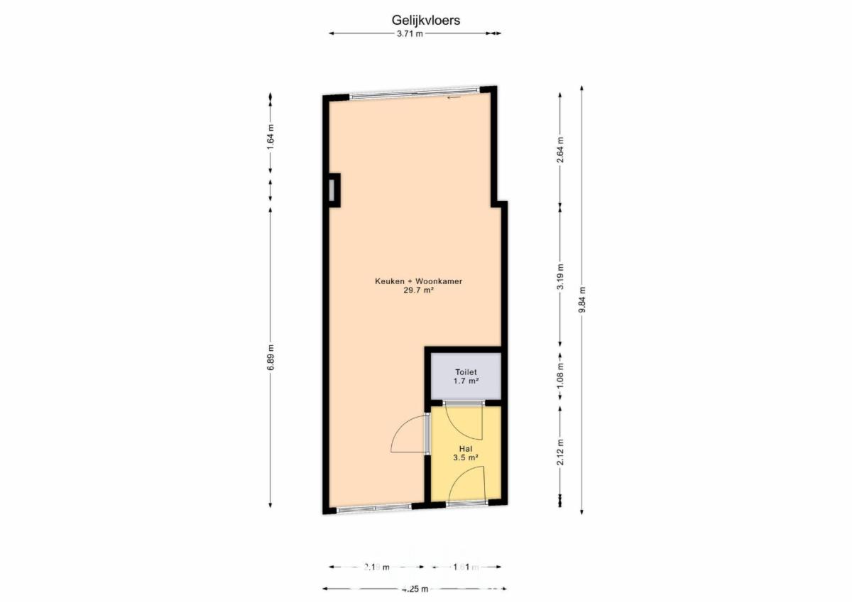 - Gelijkvloers: : hal, toilet, leefruimte met open keuken en stadstuin;