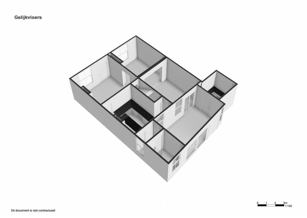 De woning bestaat op het gelijkvloers uit een ruime inkomhal, leefruimte, keuken voorzien van alle modern comfort, badkamer en veranda met berging.