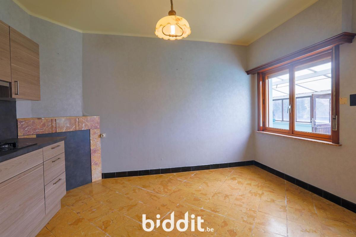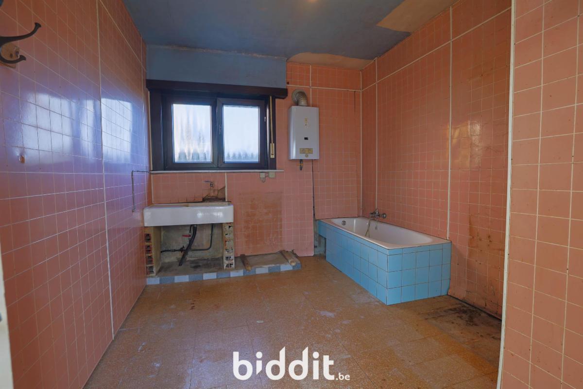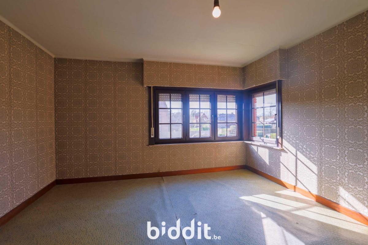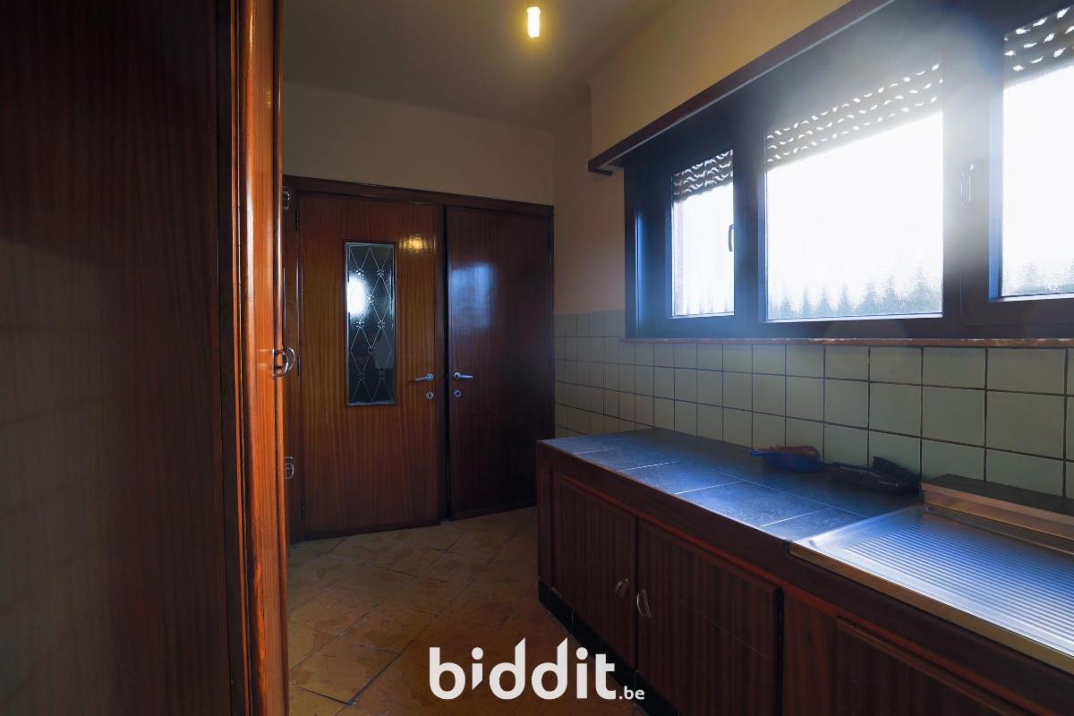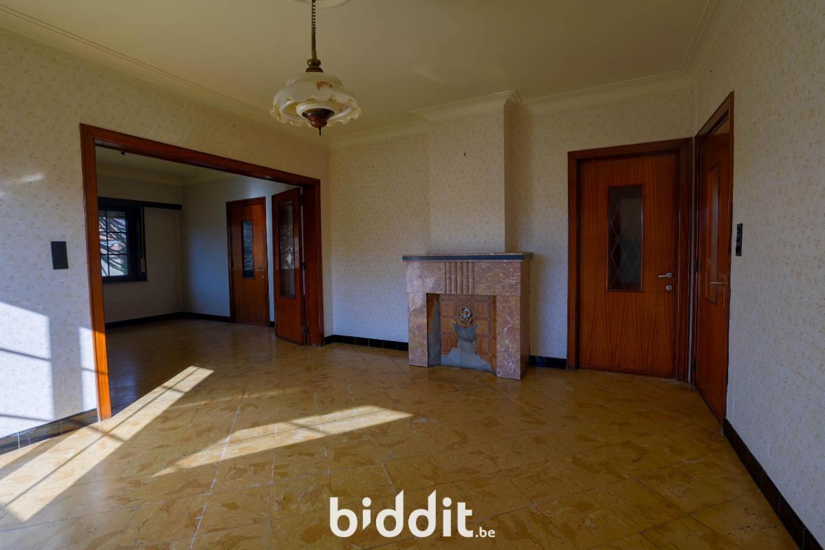 1) Vrijstaande woning met grote tuin: kelder, op het gelijkvloers: inkom, salon, eetplaats, keuken, washuis, berging, wc met een aangebouwde veranda, op de verdieping: nachthal, 3 slaapkamers, met zolder en vrijstaande berging.