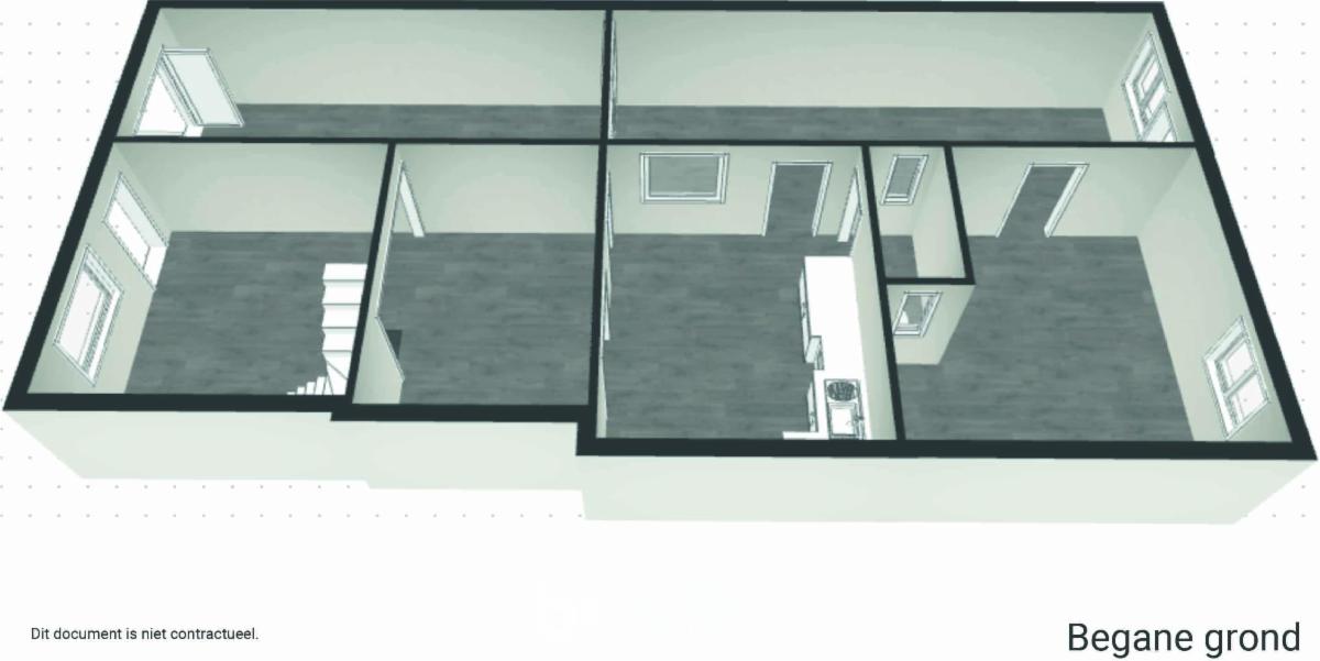 Gelijkvloers: woonkamer, keuken, wc, veranda, garage, werkhuis. 1ste verdiep: drie slaapkamers, badkamer. Tuin.