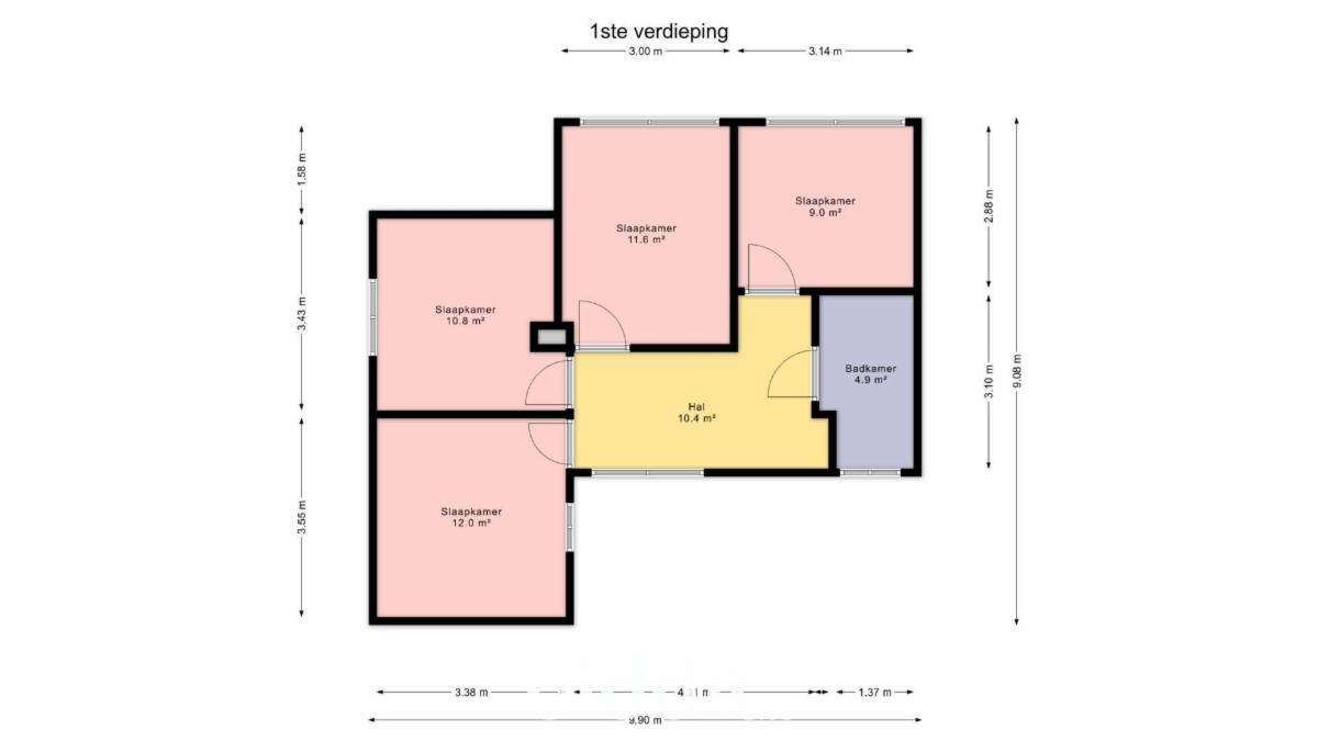1e Verdieping: 4 slaapkamers, hal en badkamer.