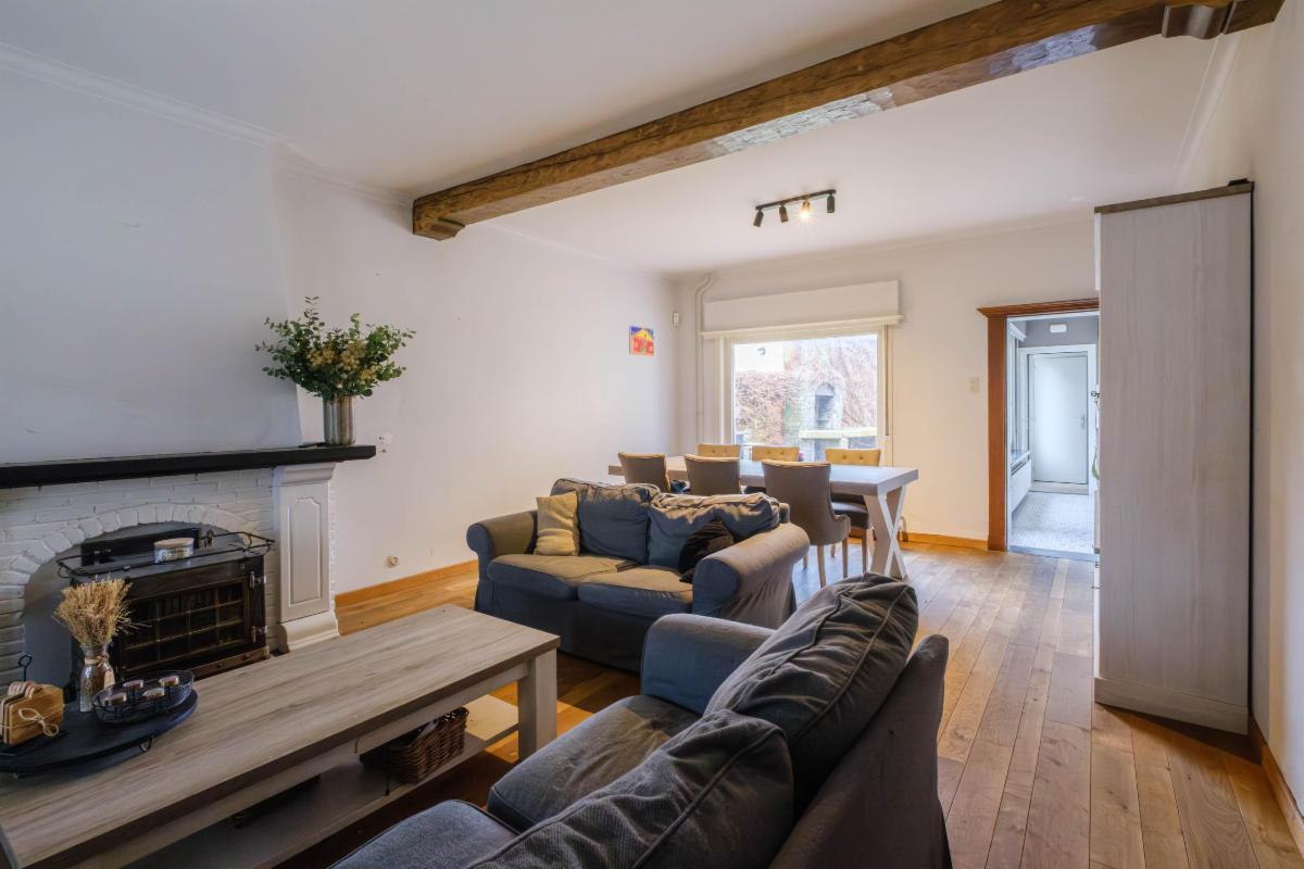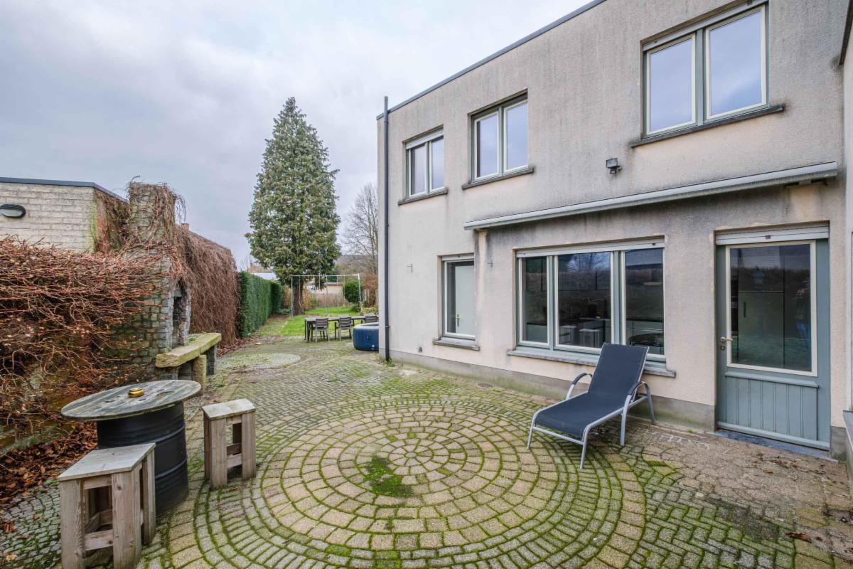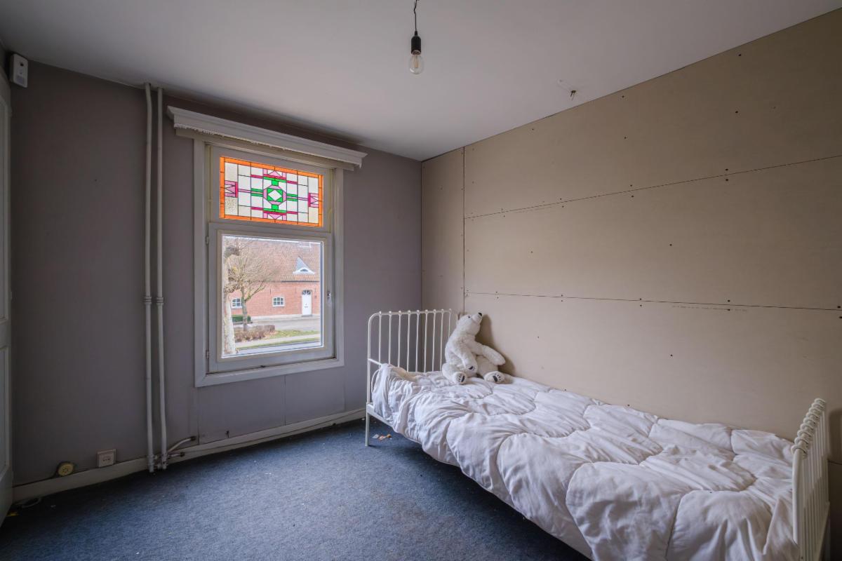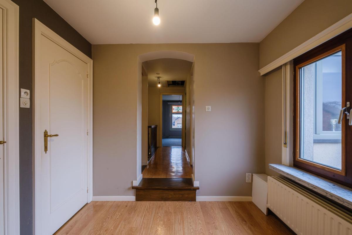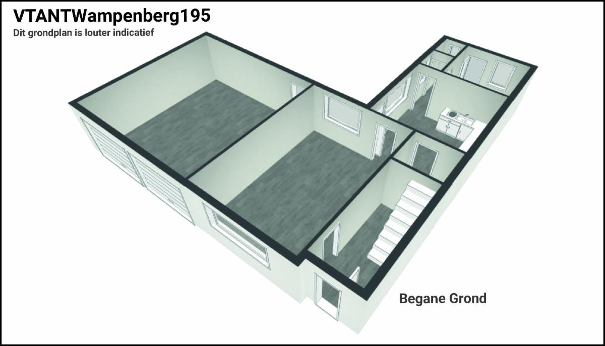 - gelijkvloers: inkomhal, woonkamer, keuken, badkamer, grote garage met dubbele poort.