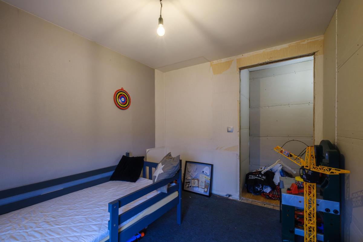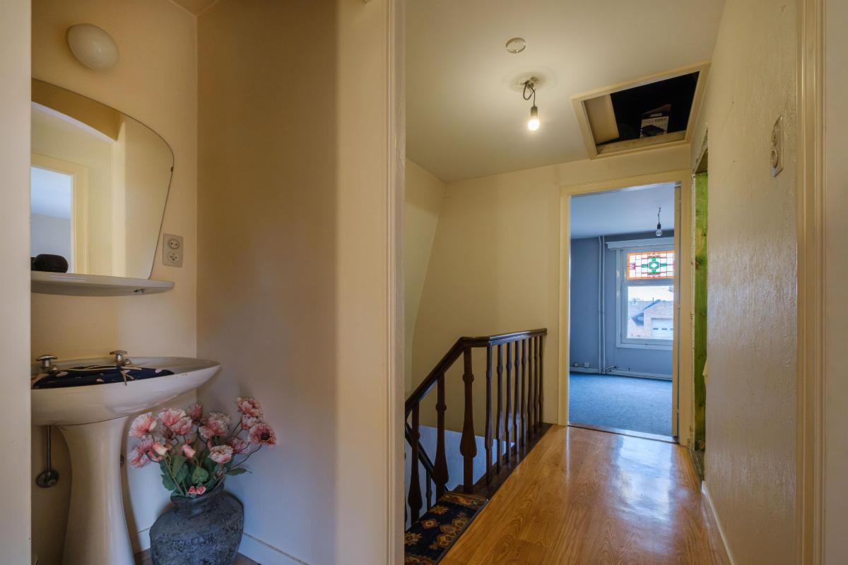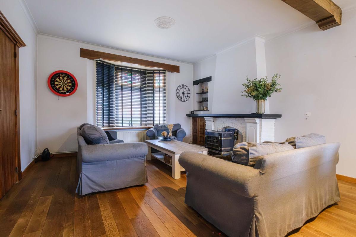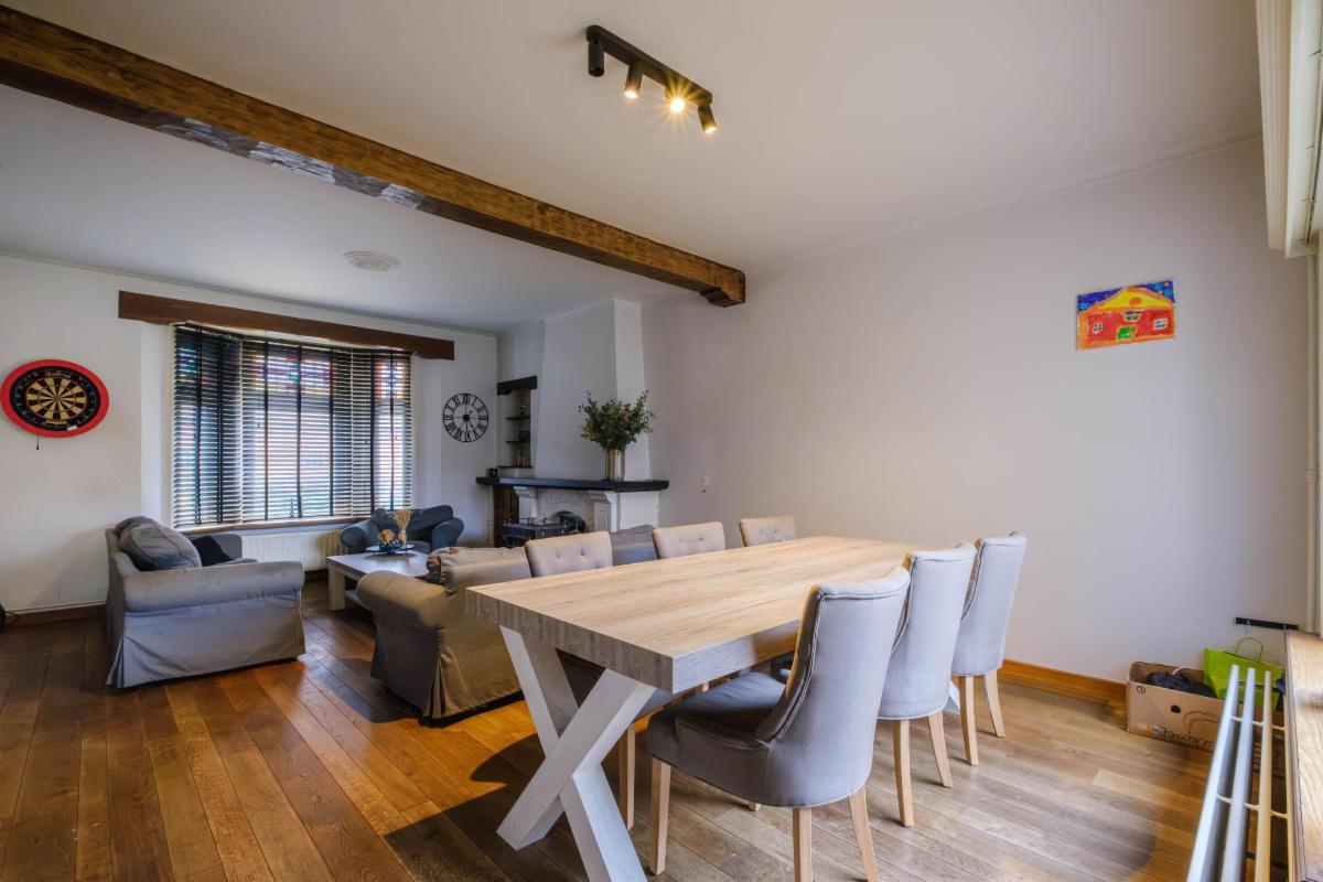 - gelijkvloers: inkomhal, woonkamer, keuken, badkamer, grote garage met dubbele poort.