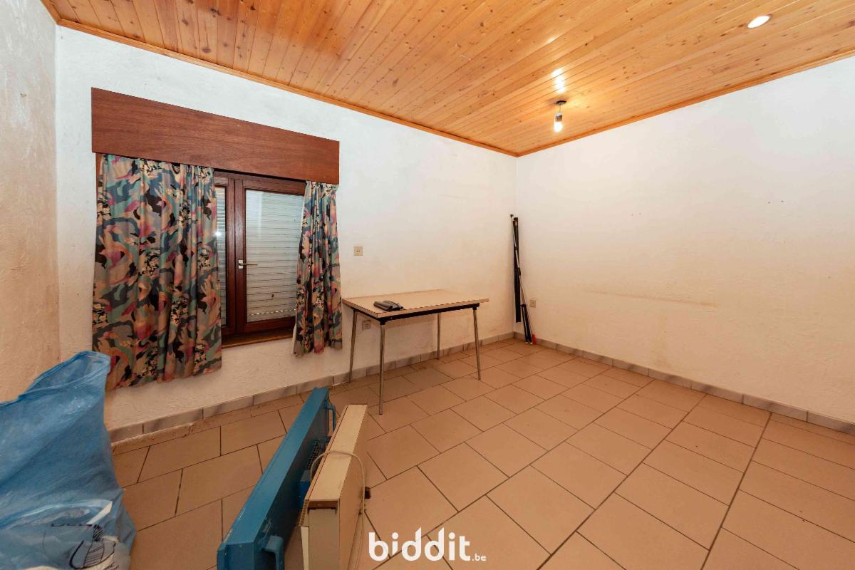 Grote oprit met extra interne garage, 2 slaapkamers, badkamer, keuken, leefruimte met zithoek, berging en bureauruimte.