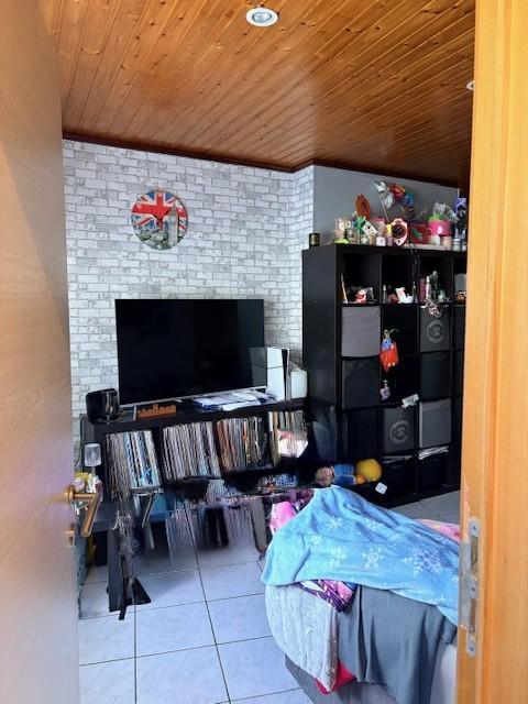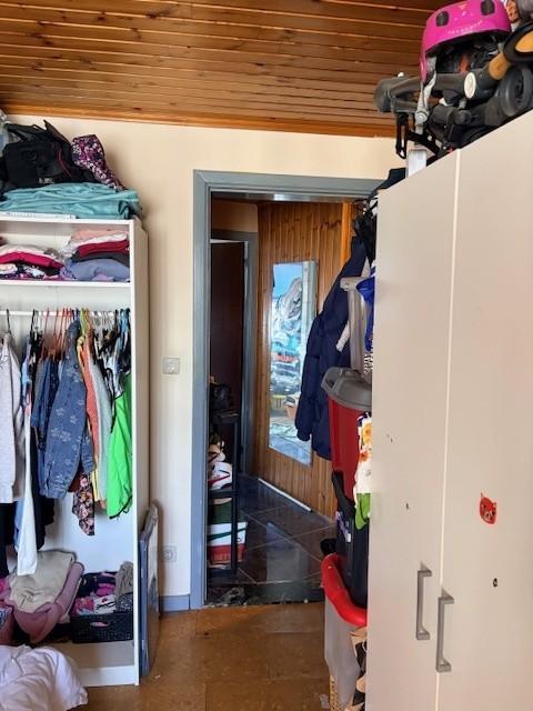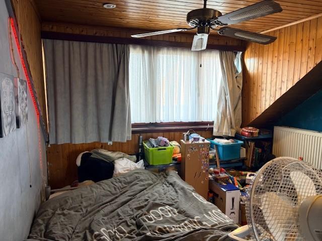 Zolderruimte, momenteel ingericht en gebruikt als slaapkamer.